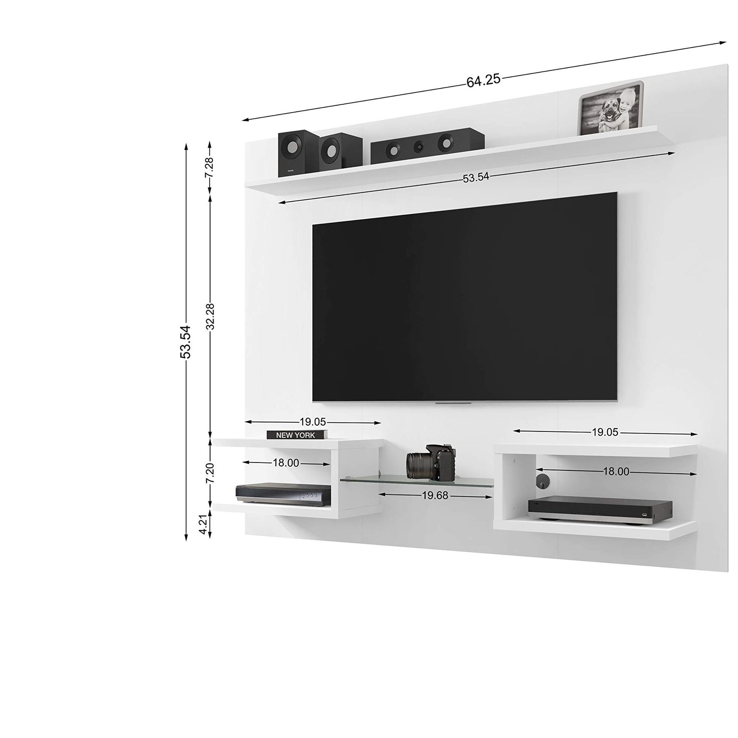 Manhattan Comfort Plaza Floating Entertainment Center for Living Room, Wall Mounted TV Stand with Display Shelves, Wire Management & Mounting Hardware, Fits up to 50" Screens, White