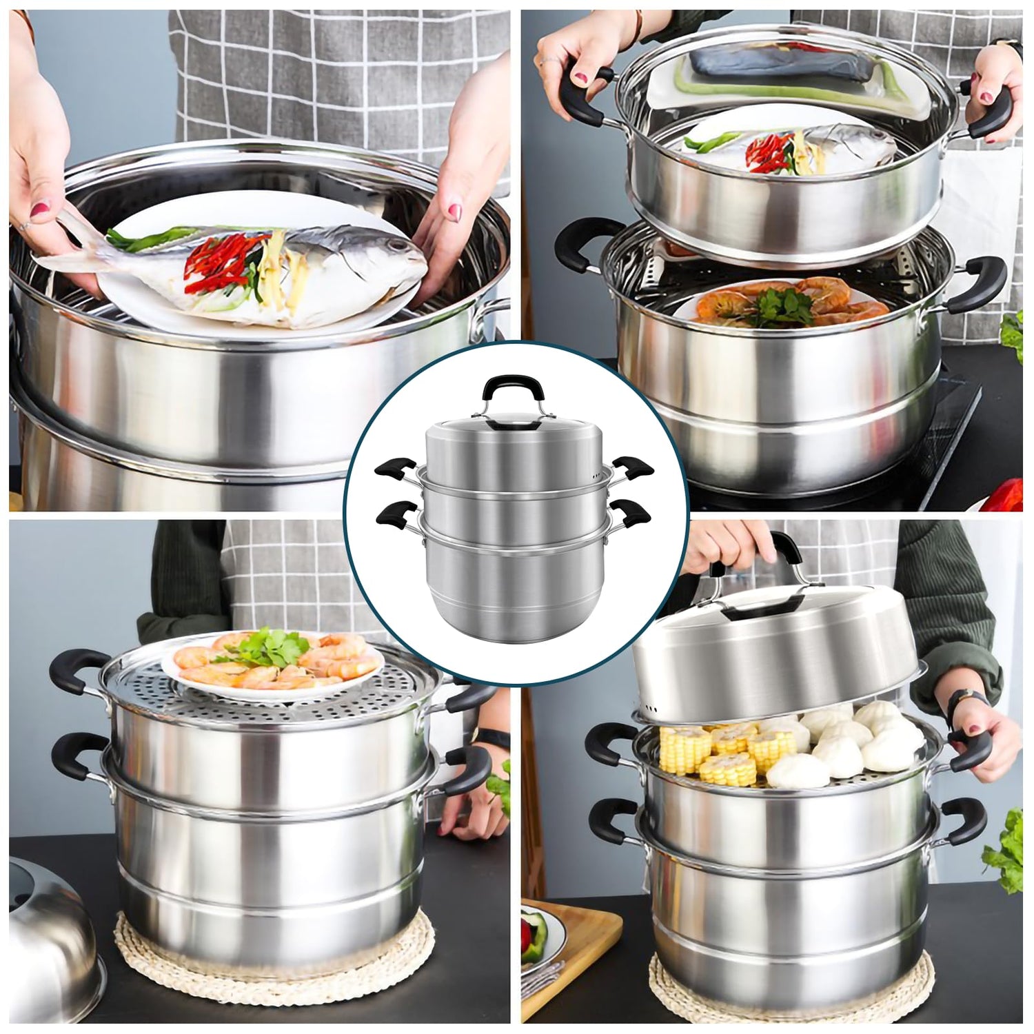 - Multipurpose Steam Pots for Cooking – Our steamer pot can be used as a stockpot or as steamers, along with different combinations, you can use it as a 2-layer steam pot at most to meet your different cooking needs. The thick and durable crimped veggie steaming pot rim provides you with splash and drip-proof