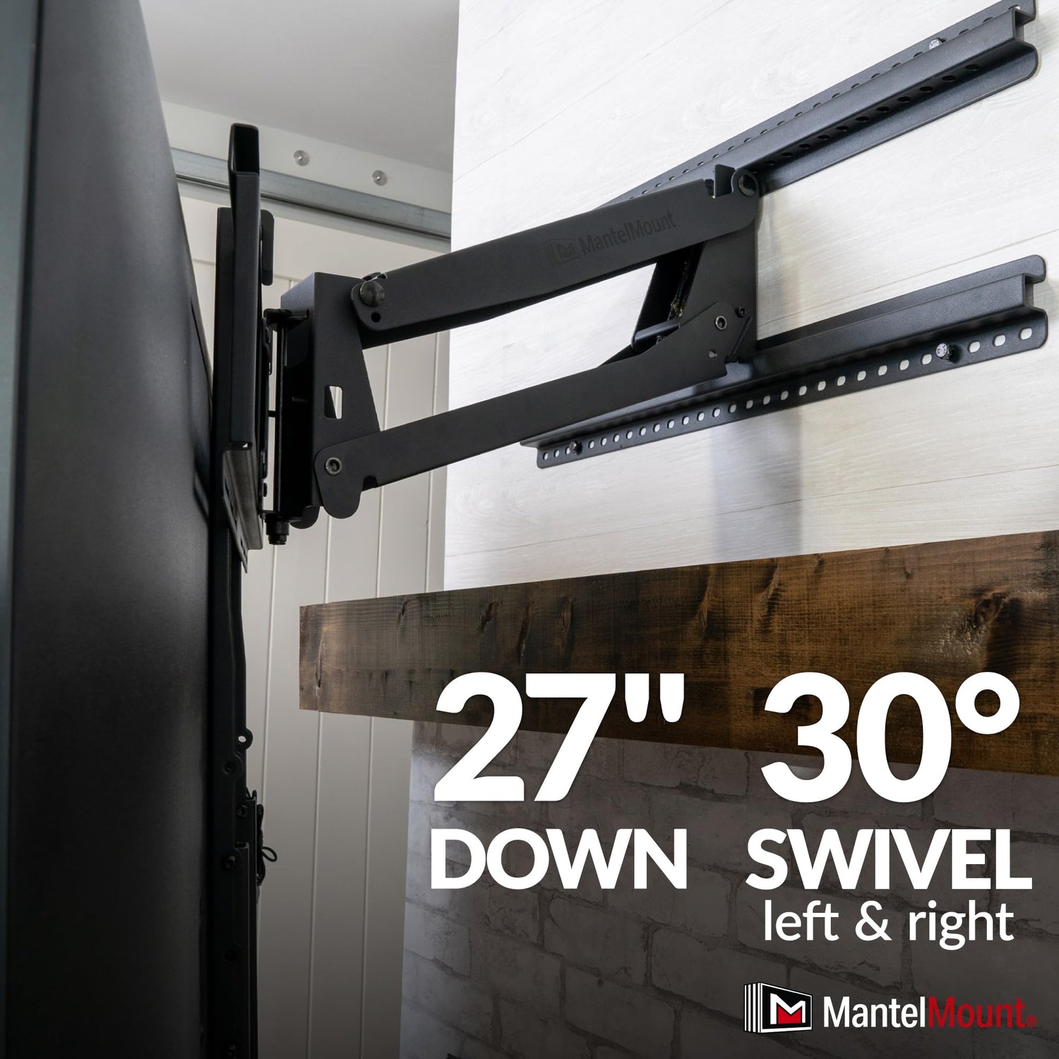 - Full Range Motion: Up to 27" Vertical Travel, 30° Swivel Left/Right and 19" Off-The-Wall, Maximum Clearance: 18" Deep Mantel. True motion versatility to accommodate countless room setups.