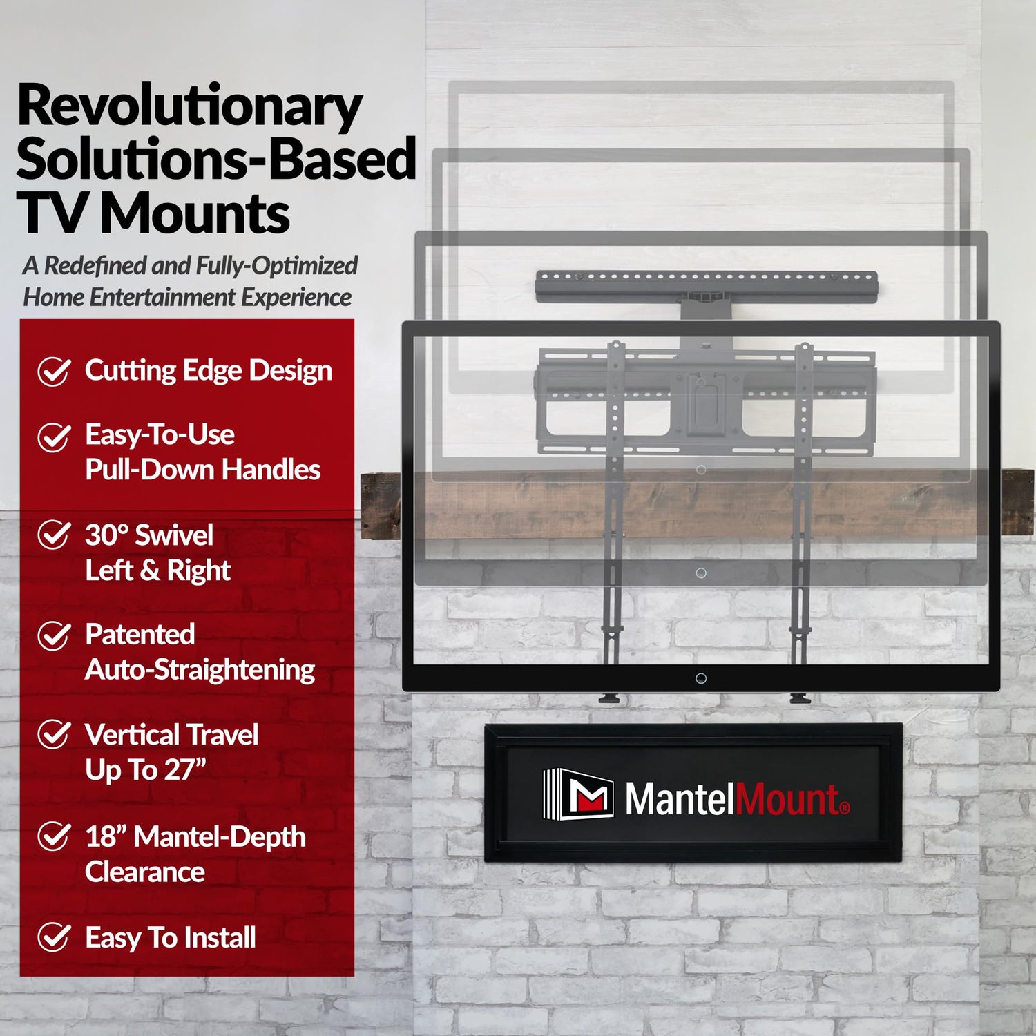 MantelMount- MM340 Above Fireplace Pull Down TV Mount- Televisions 44" to 80" Up to 90 lbs - Safe Auto-Adjusting TV Mounts - Patented Motion Stops, Handles, Balancing Technology - Superior Steel