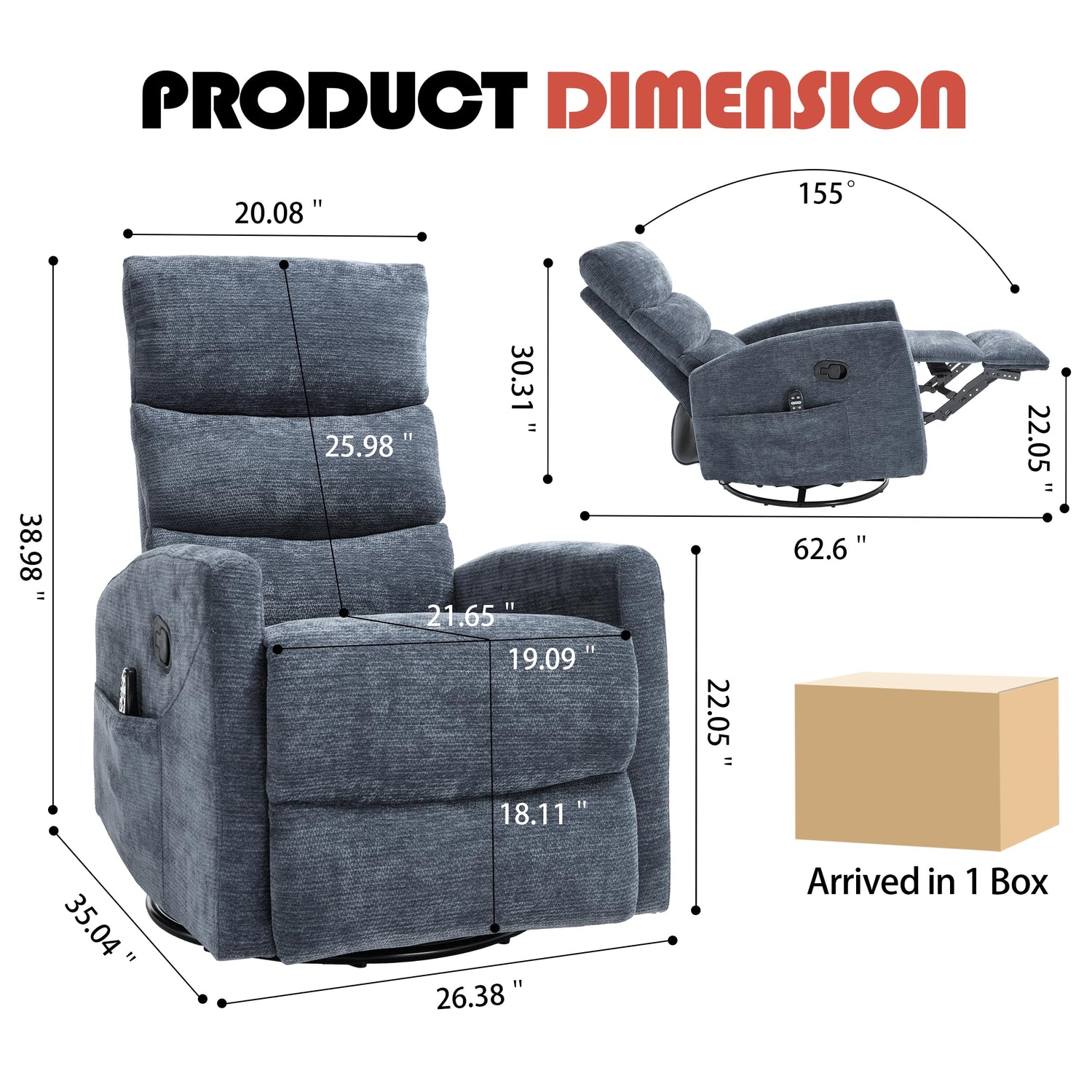 - [Premium Relaxation, Exceptional Value] Discover the perfect blend of features – swivel, rocker, recliner, glider, and massage – in one affordable recliner. An ideal glider recliner for your living room sanctuary.