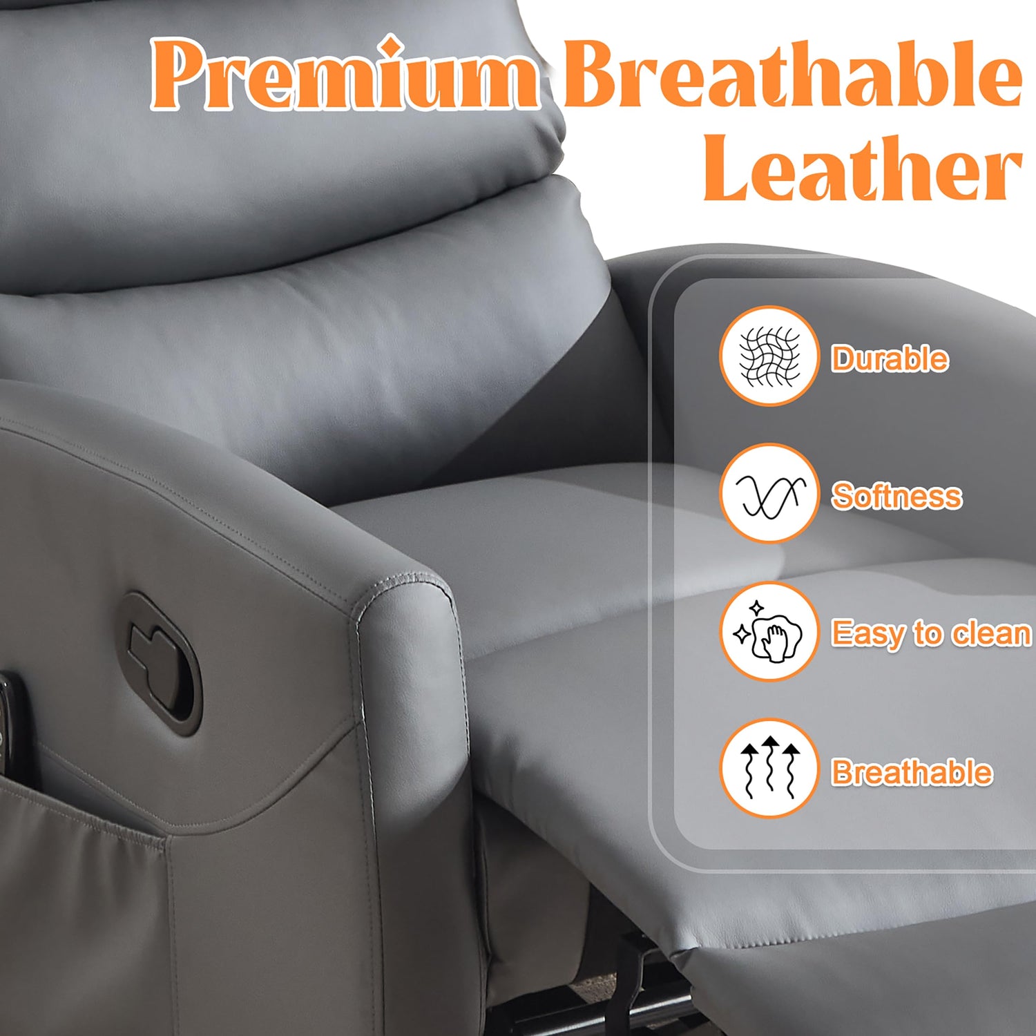 Manual Swivel Rocker Recliner Chair with Massage, Overstuffed Recliner Glider with Vibration Massage and Heat for Nursery, Living Room Reclining Sofa Chair, PU Leather Gray