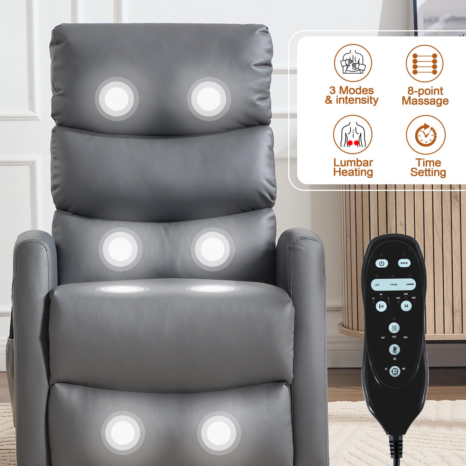- [VIBRATION MASSAGE & HEATING] 8-point massage and lumbar heating let your neck, back, hips, and thighs get relaxed and your lumbar get warmed. Besides, there are 3 massage modes and 3 intensity degrees for you to choose from. The 15-, 30-, or 60-minute timer function makes it convenient to set the massage duration as you fall asleep.