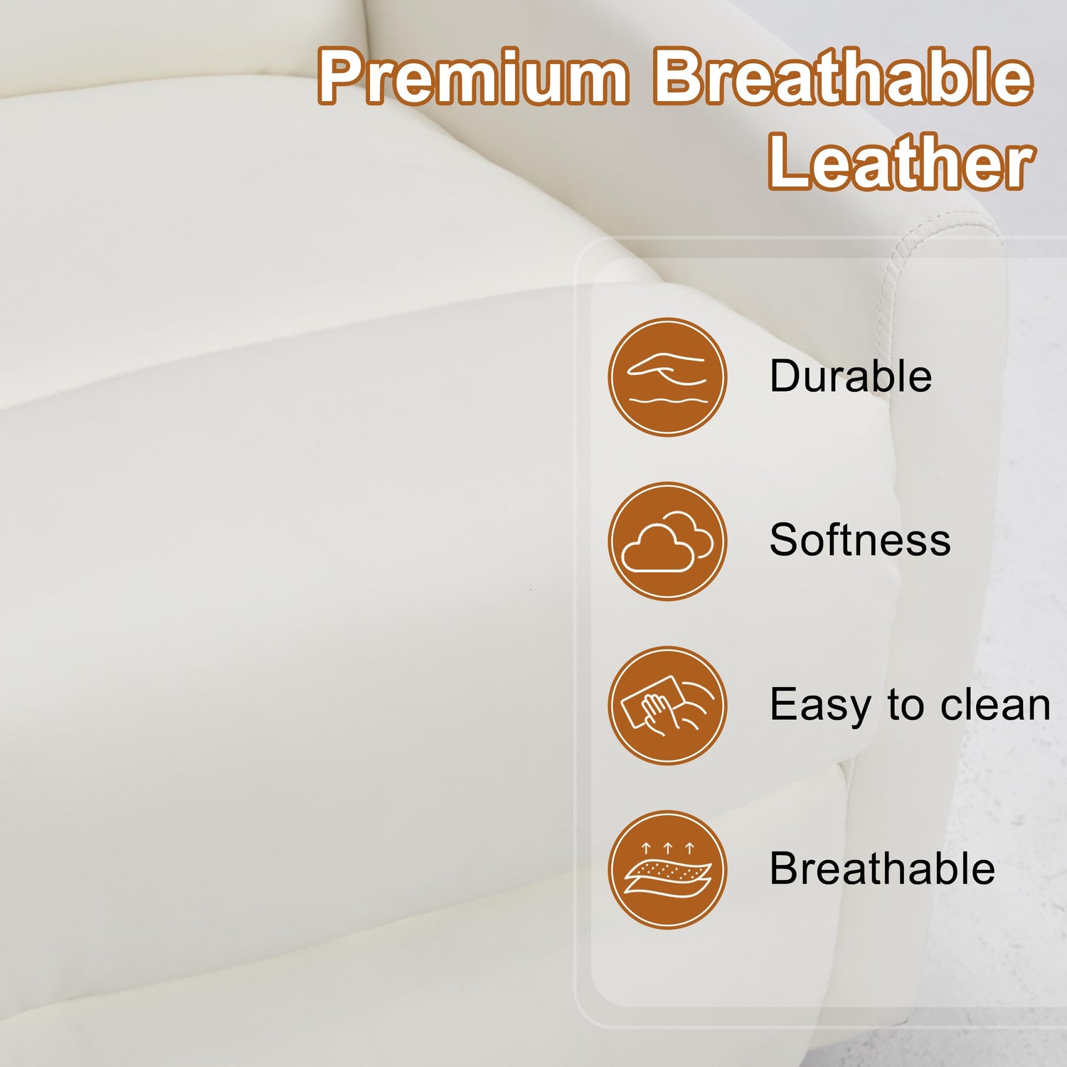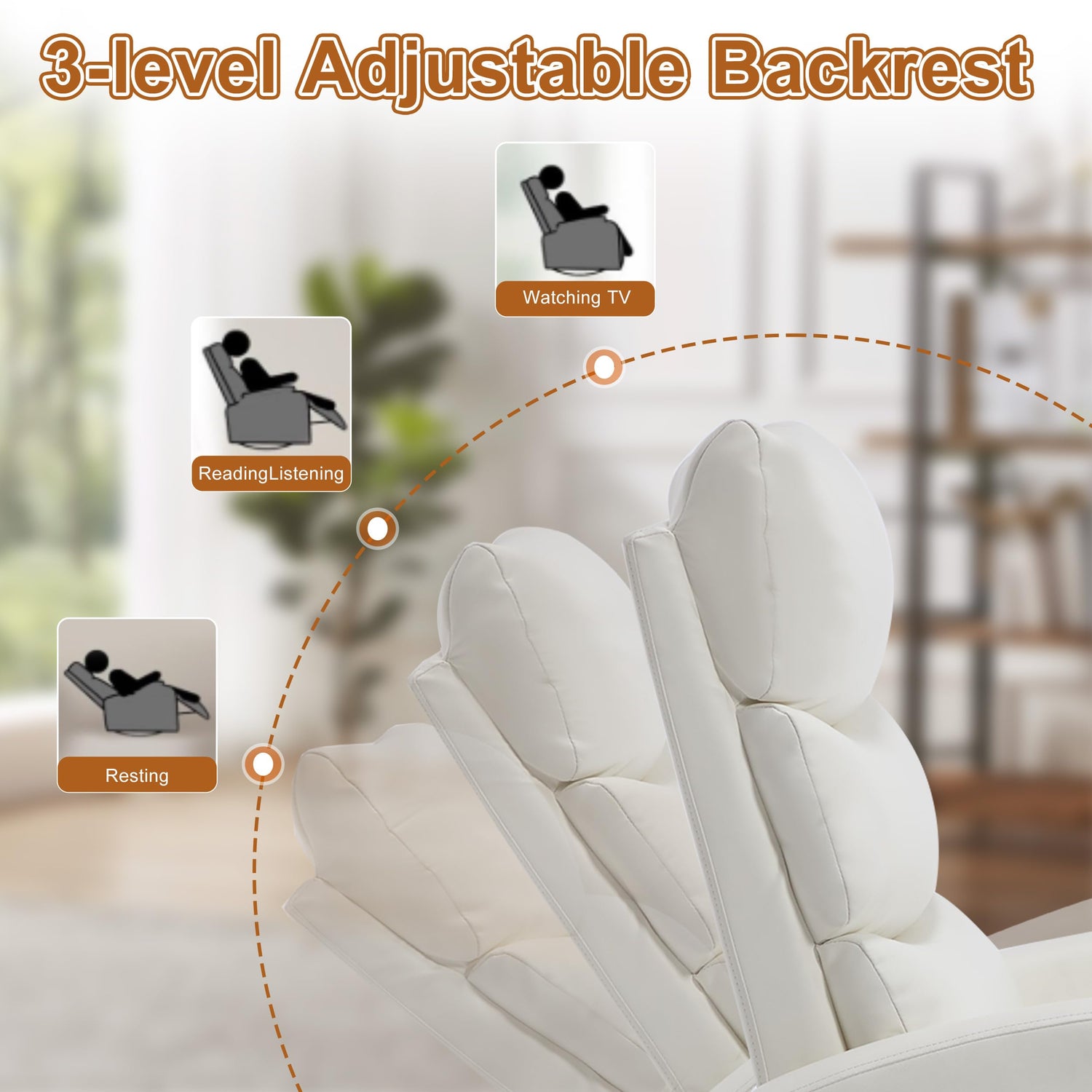 Manual Swivel Rocker Recliner Chair with Vibration Massage, Overstuffed Glider Chair with Lumbar Heat for Nursery, Living Room Reclining Sofa Chair, Faux Leather White