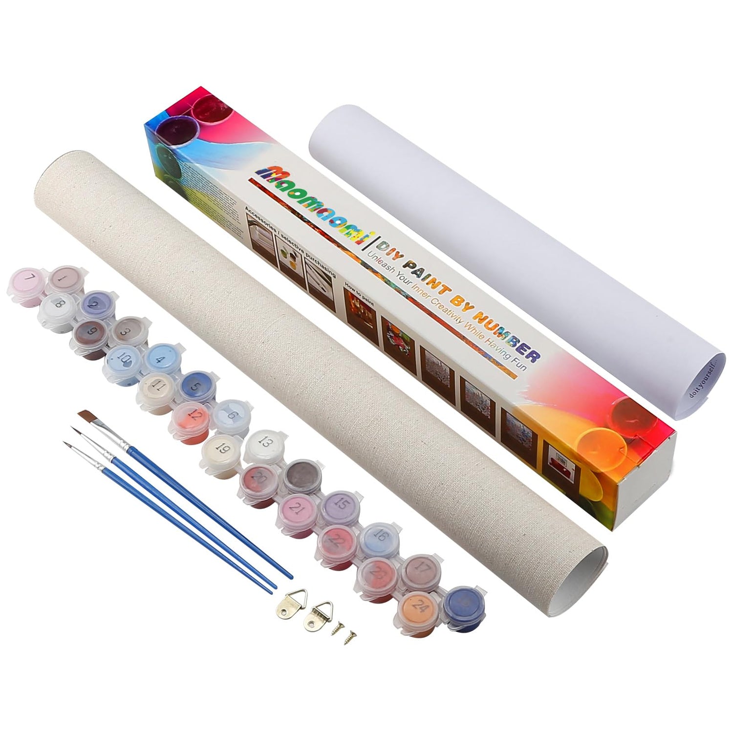 - 🎨 UNLEASH YOUR CREATIVE SIDE With this complete digital custom painting kit, you can unleash your creativity, which includes a 20x16 inch non-crease canvas, a set of acrylic paints and 3 unlimited painting and relaxation brushes.