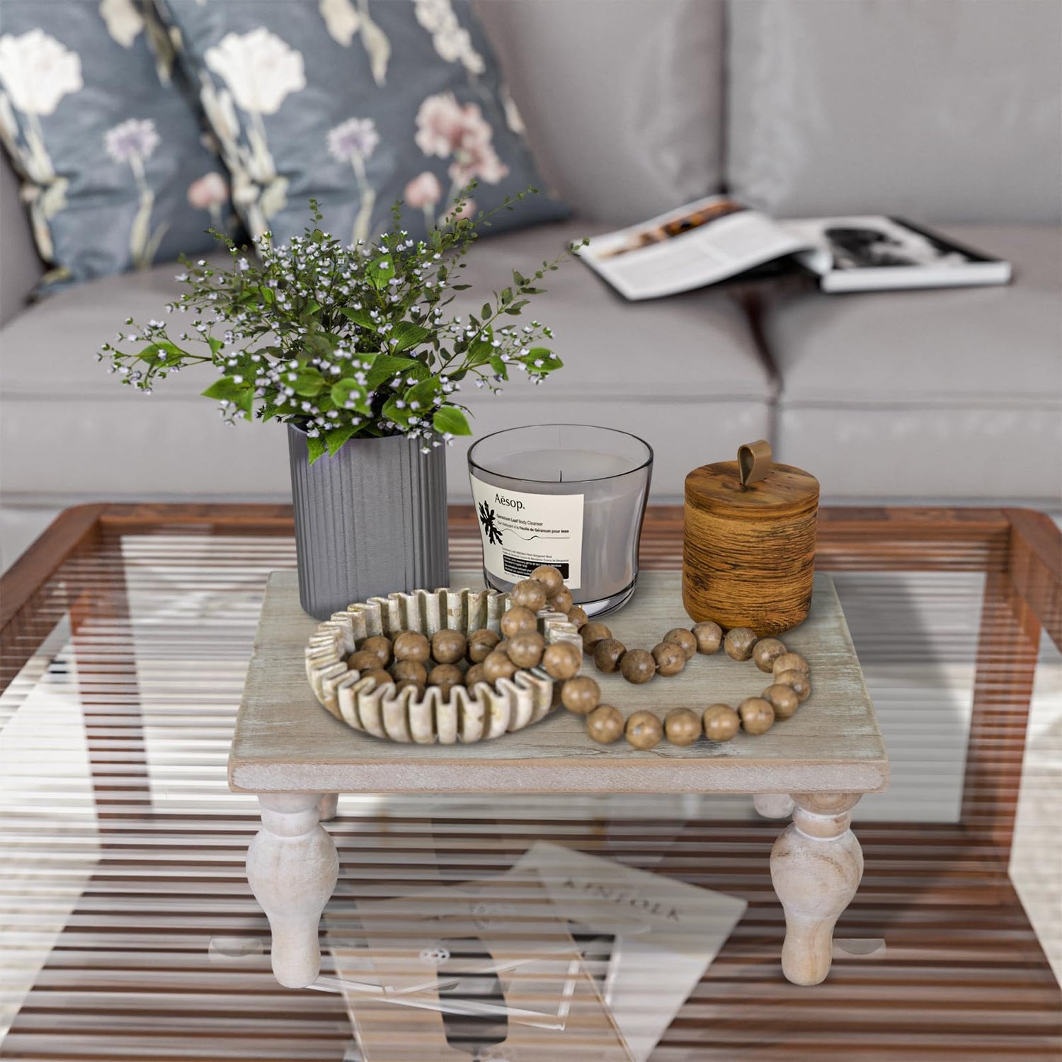 Details: Enhance your home decor with our stylish beaded wood risers, ideal for showcasing treasured decorative items. Its elegant and adaptable design effortlessly boosts the visual allure of any space: