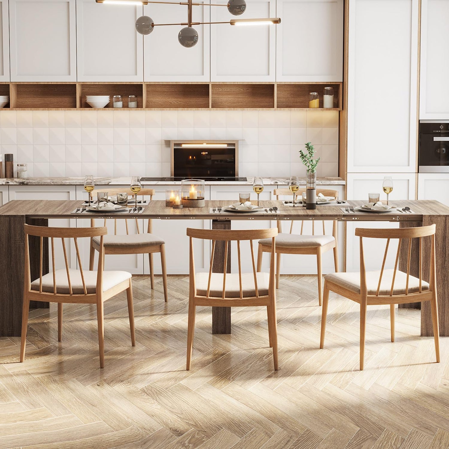 - 【Modern Expandable Kitchen Table】 With a minimalist look and creative expandable design, this farmhouse large dinner table will fit perfectly with a wide array of home decor. Perfect for your dining room, kitchen, restaurant, bistro or meeting room.