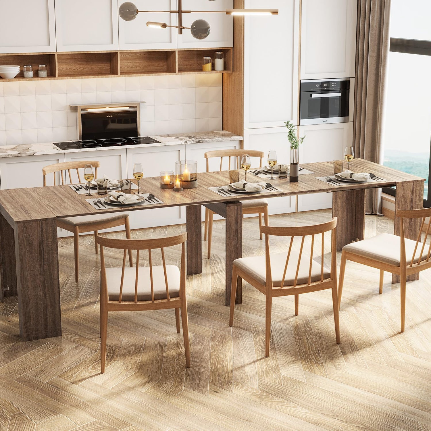 Maotifeys Rustic Wood Extendable Dining Room Table 118" Large Expandable Dining Tables for 6 8 10 12 People Industrial Transformer Kitchen Table Space Saving for Family Gathering (Oak)