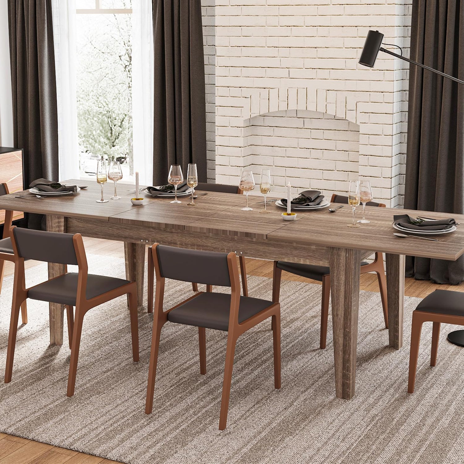- 【Quality Extendable Dining Room Table】The top of this large expandable dinner table is made of high-quality Engineered Wood, which is very solid and durable. This table will let you enjoy for many years. Weight Capacity: 150LBS.