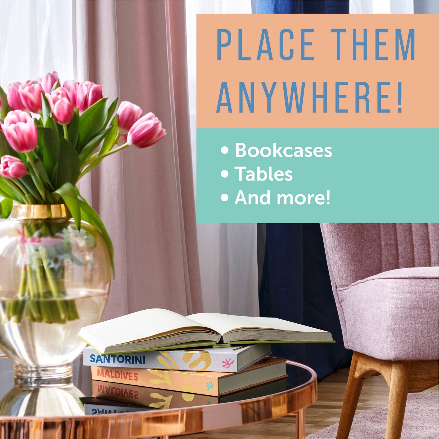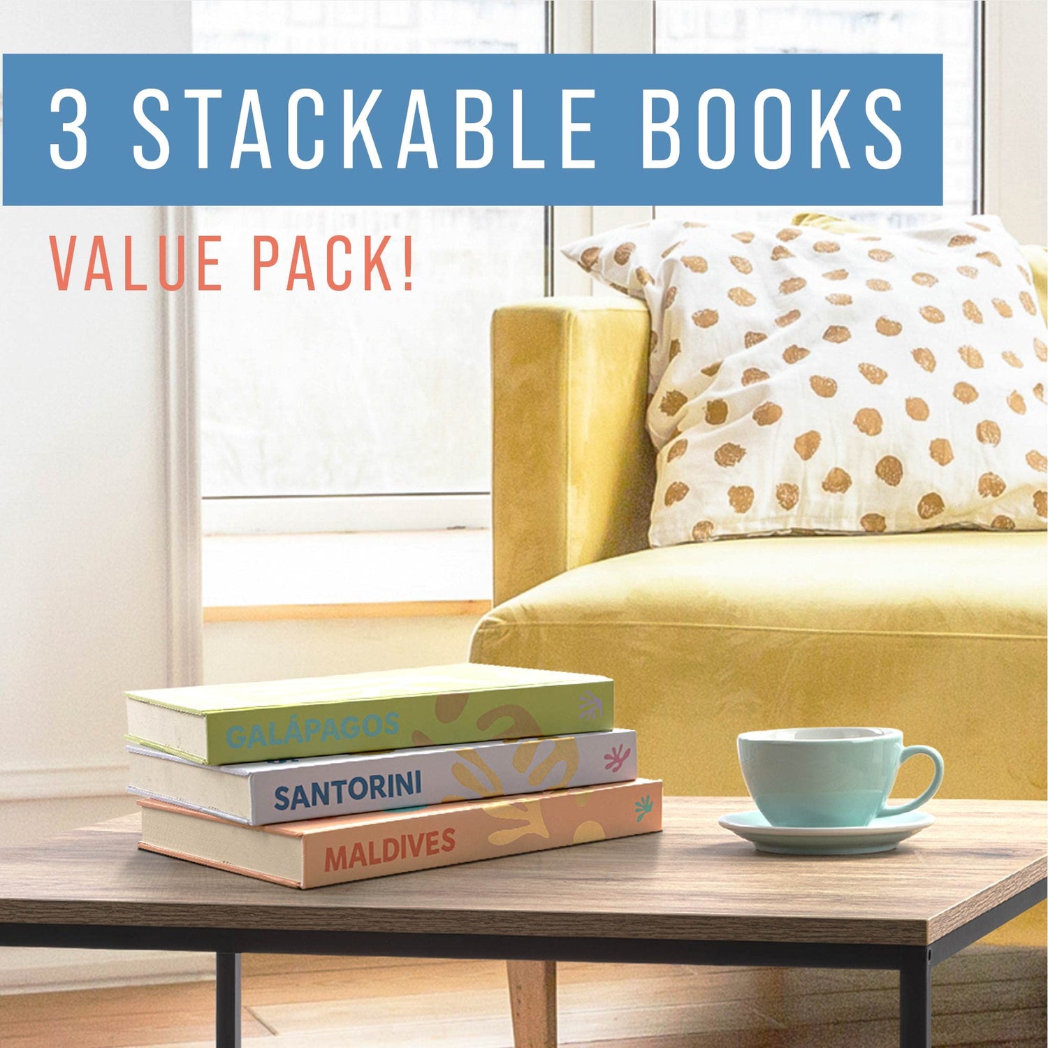 - Travel-Themed Home Decor - Our coffee table books come with a set of 3 hardcover books that feature popular travel destinations on the spine and front (Maldives, Santorini, and the Galapagos)