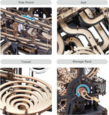 The Marble Night City isn't just about assembling pieces; it's about experiencing the marvel of mechanics. This sophisticated 3D puzzle features an array of interconnected tracks driven by gears, including exciting elements such as: