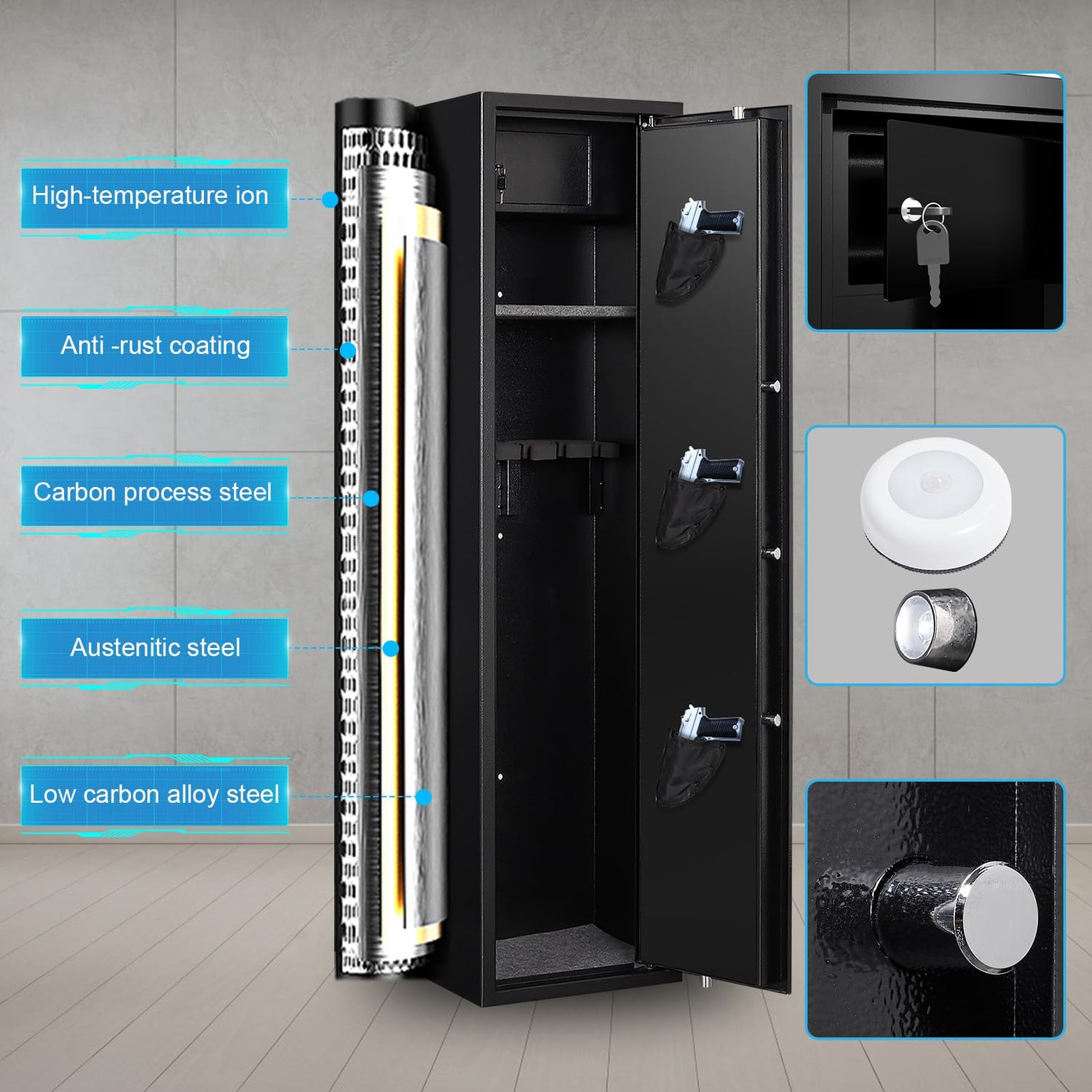 - 【Rifle Cabinet Material】The Tightly Fitted Thick Plate has Excellent Anti-theft, Anti slip, Anti drilling, There are 3 Solid Bolts with a Diameter of 22mm Installed on the Door, Keeping your Gun Cabinet Away From Unwelcome Guests.