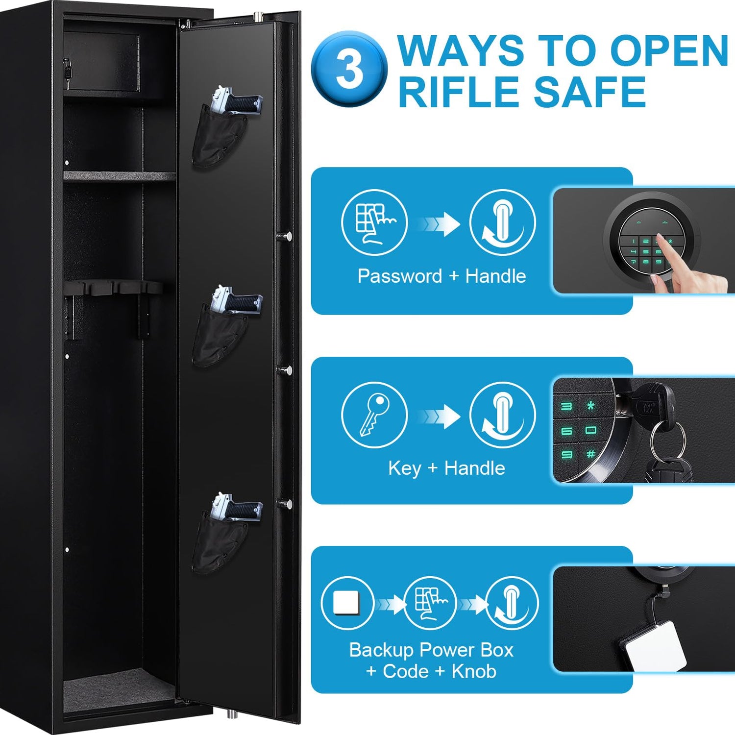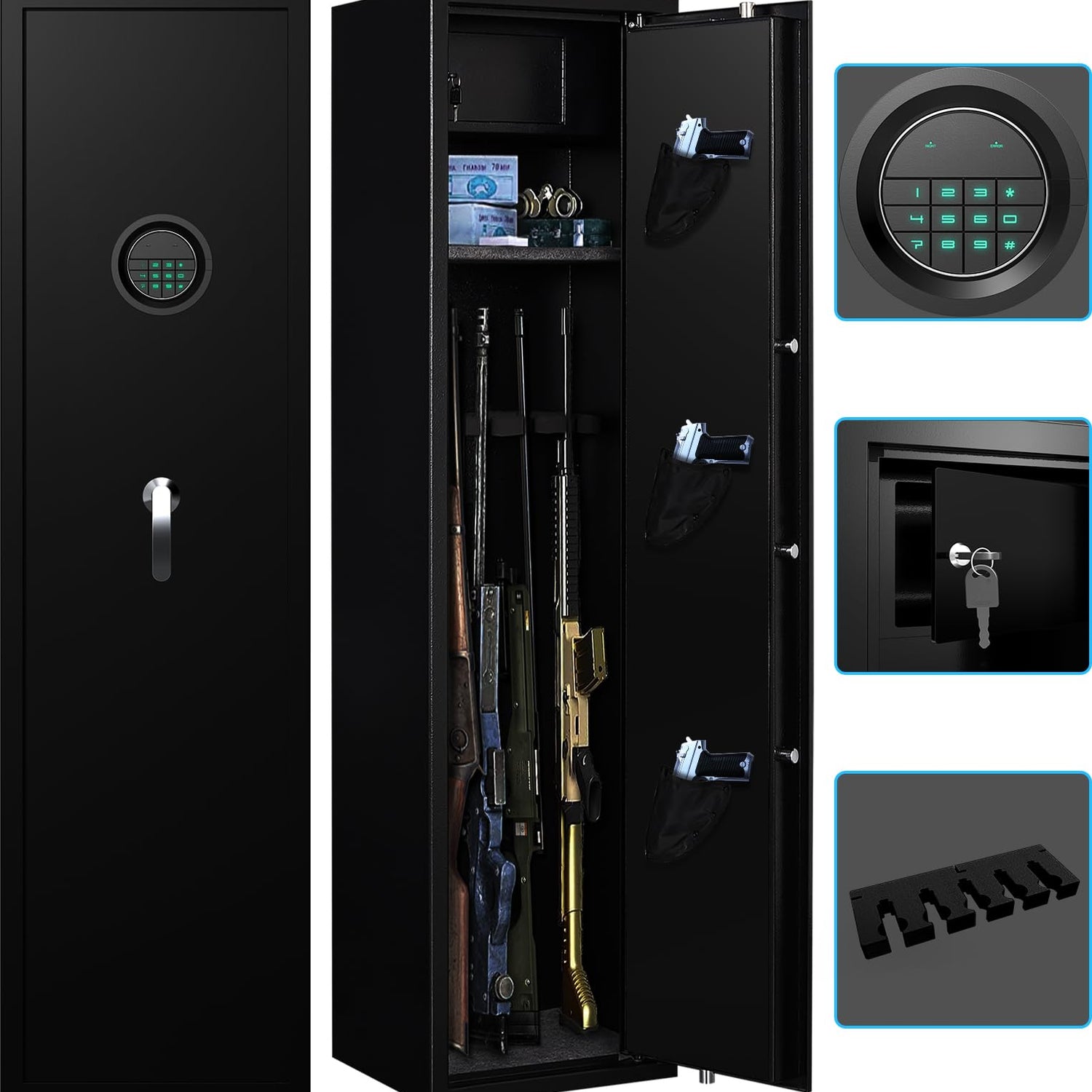 Marcree 5 Gun Safe for Rifles, Gun Cabinet with Drawer, Long Gun Safe with Dual Alarm System, Rifle Safes for Home, Shotgun Safe with LED Light, Rifle Safe with Mute Function