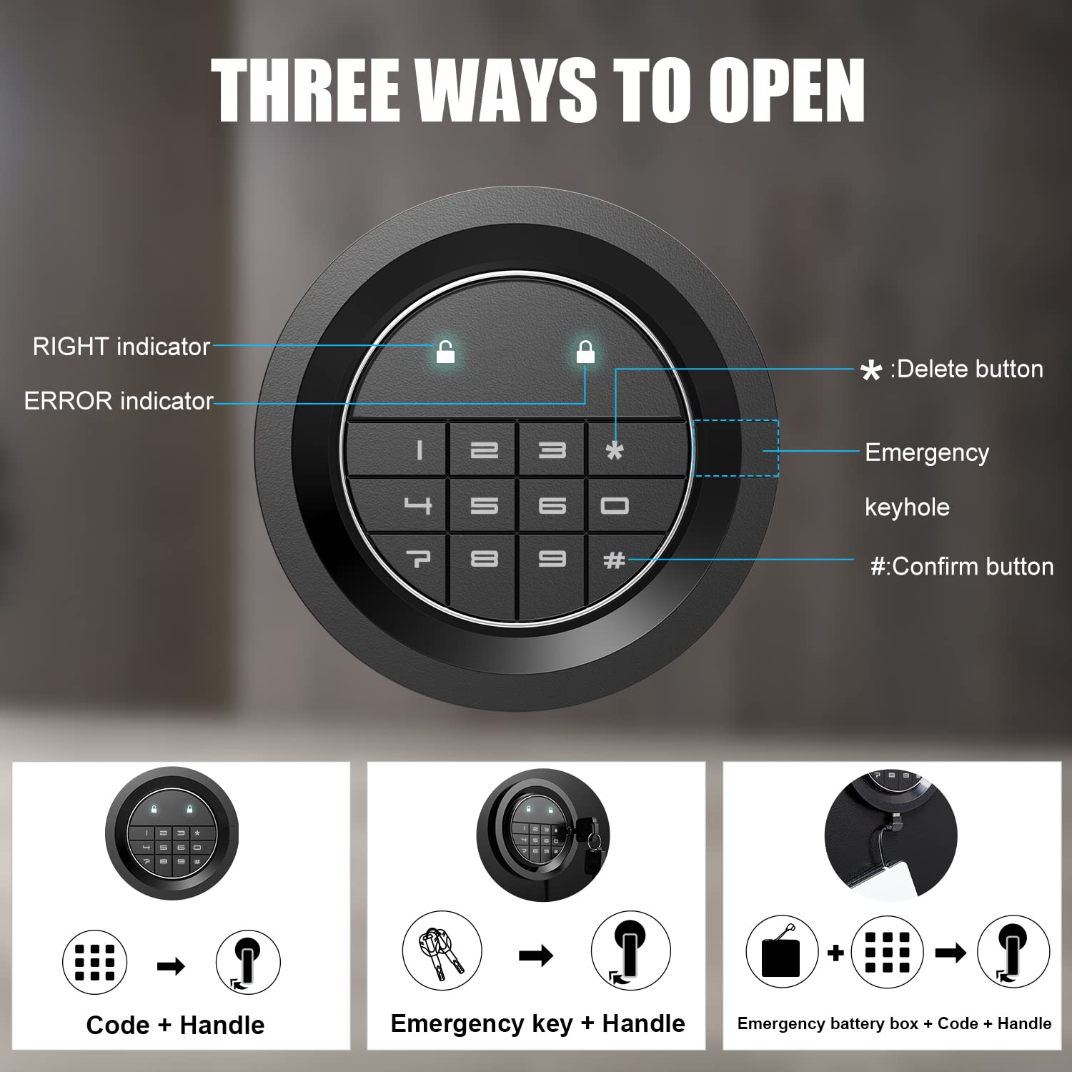 - đ„ăQUICK ACCESS GUN CABINETăThe numeric keypad allows you to program this electronic rifle safe with your own password for quick access to firearms in an emergency. It can store 2 sets of digital passwords, and the code memory function ensures that your code will not be lost when the power is exhausted. This helps prevent unwanted visitors from using your firearm.