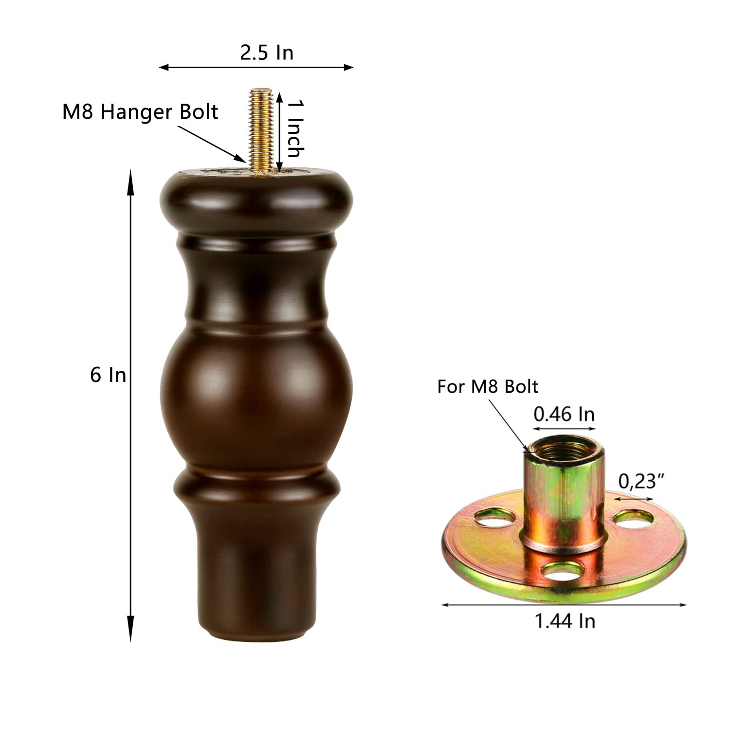 - Easy Installation: Each package includes 4 wooden legs and 4 sets mounting nuts and screws, plus pre-installed M8 hanger bolt for installation
