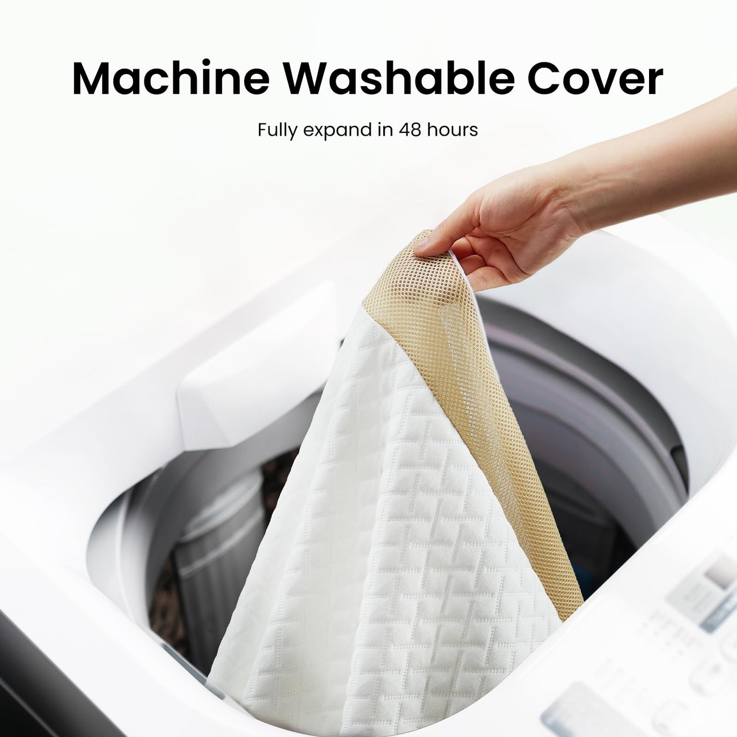 - Removable & Washable Cover: The Soft cover helps maintain sleeping temperature with unique features like organic, breathable, and sustainable. There’s an anti-slip design on the bottom and adjustable straps to fix the mattress topper on the bed, keeping your bed tidy.