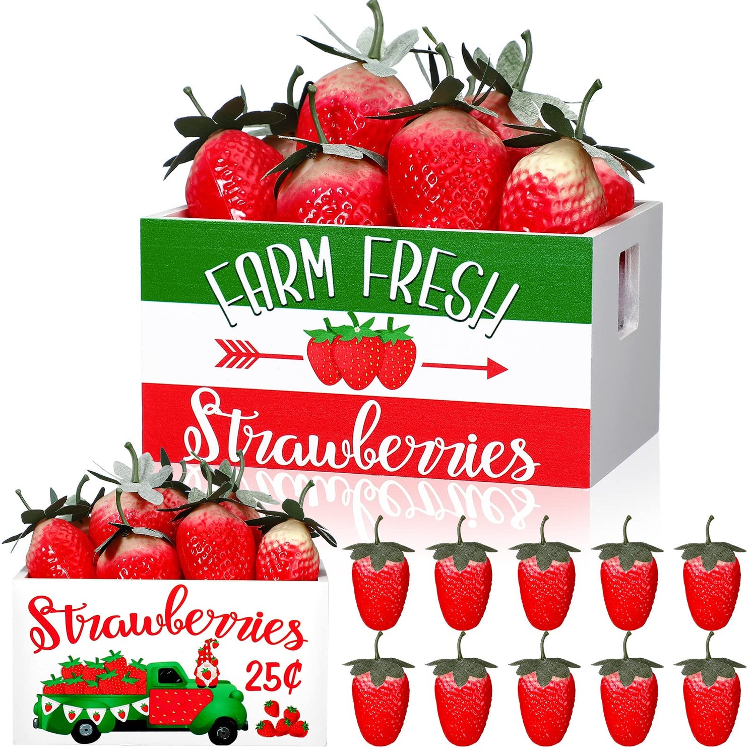 - Summer Centerpiece Decoration: you will receive a double sided printed small strawberry crate and 8 pcs of simulated strawberries, full of loveliness and elegance, enough to decorate your home in summer