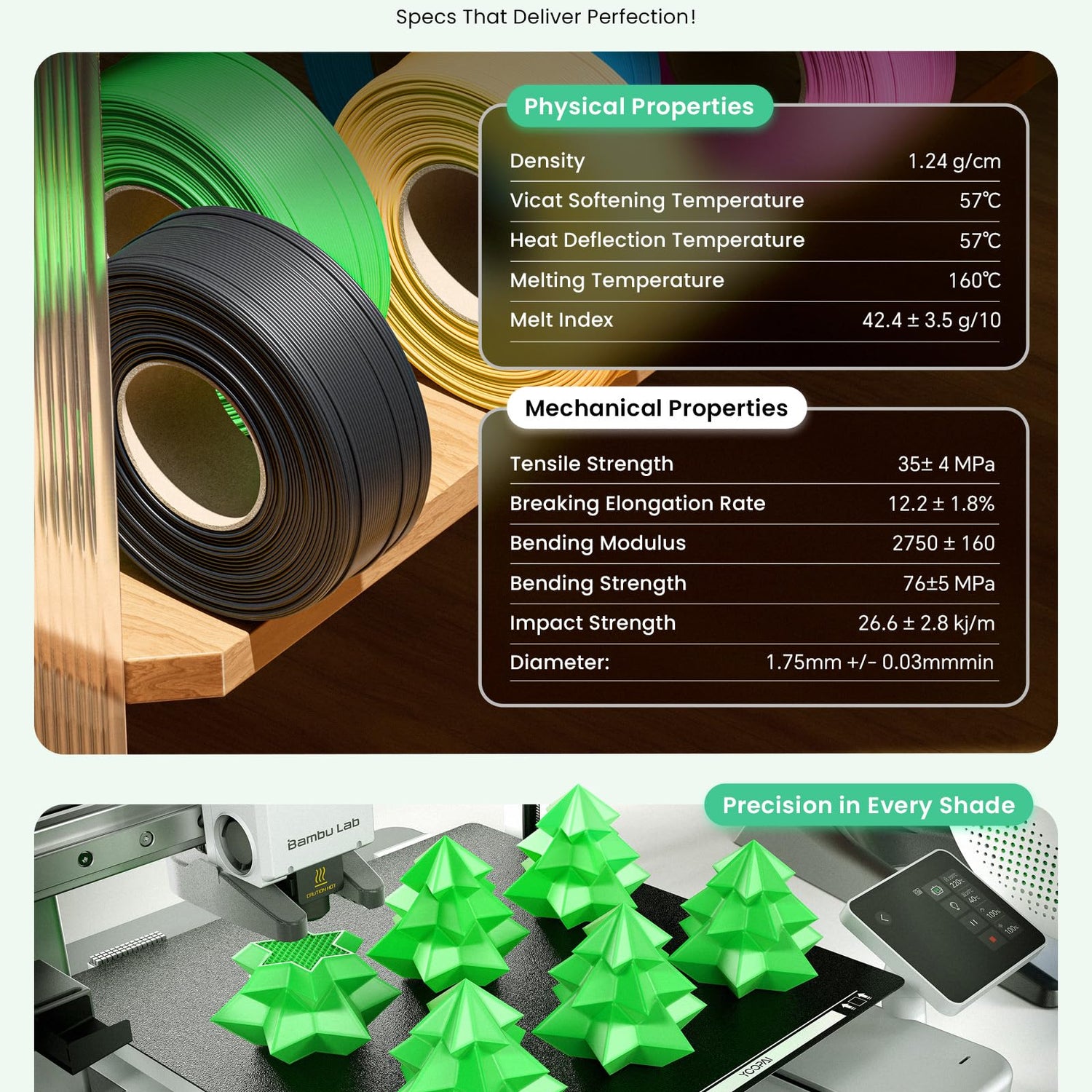 - Eco-Friendly Refill Packaging – Reduce Waste & Support Sustainability. Each 1kg roll comes in eco-friendly refill packaging, designed to reduce plastic waste by fitting Bambu Lab reusable spools. Made from corn-based, renewable materials, this filament is biodegradable—perfect for environmentally conscious makers.