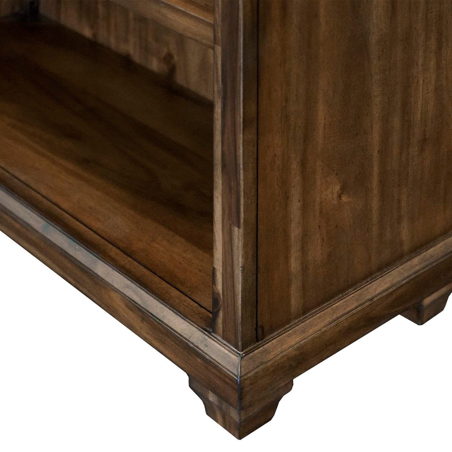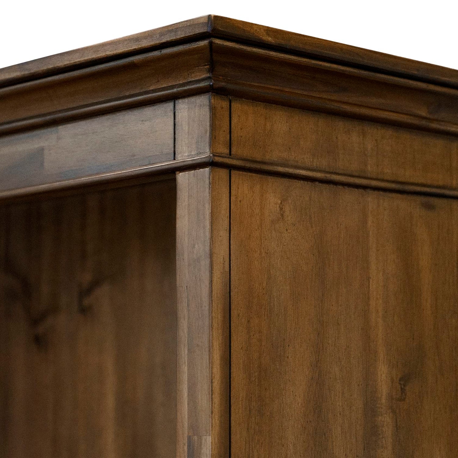 - Distressed natural brown finish
