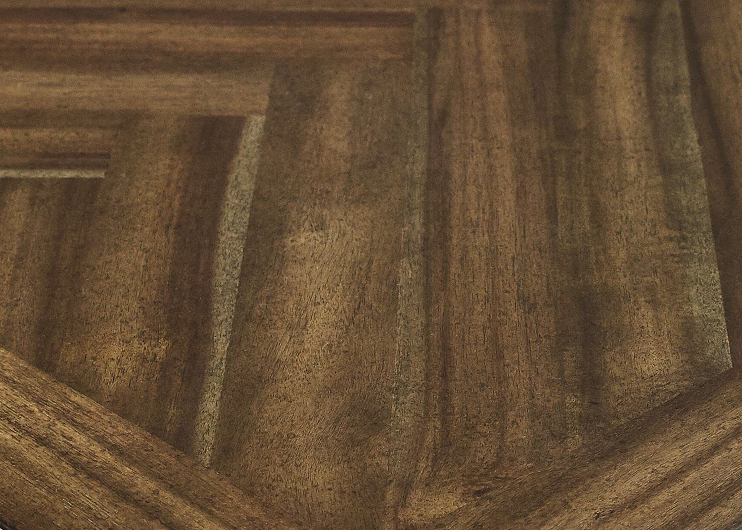 Porter is a standout collection with classic style. Natural wood veneers finished in warm brown with soft gold undertones feature a unique herringbone pattern with center “X” design. The vintage finish allows the natural wood grain to show through with added detail for an aged appearance, creating a casual yet elegant look. Captured end panels with additional moldings emphasize its clean straight forward appeal.