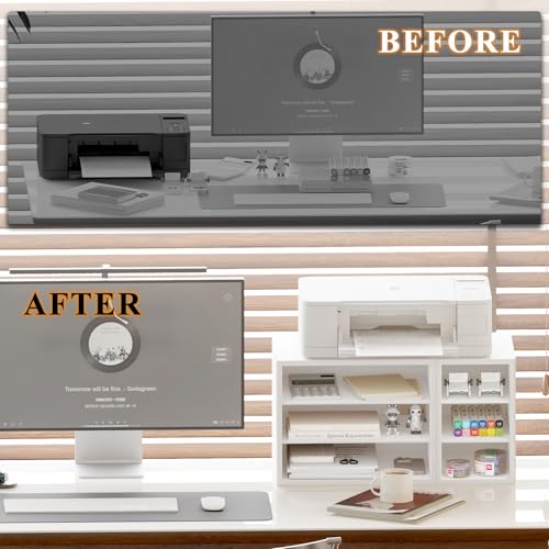 - 【Strong & Durable】The printer stand is made of high-quality board, Wear-resistant, sturdy and durable. 8 Anti-slip Pads ensure printer riser more stable and avoid sliding, also can protect desktop from scratches.