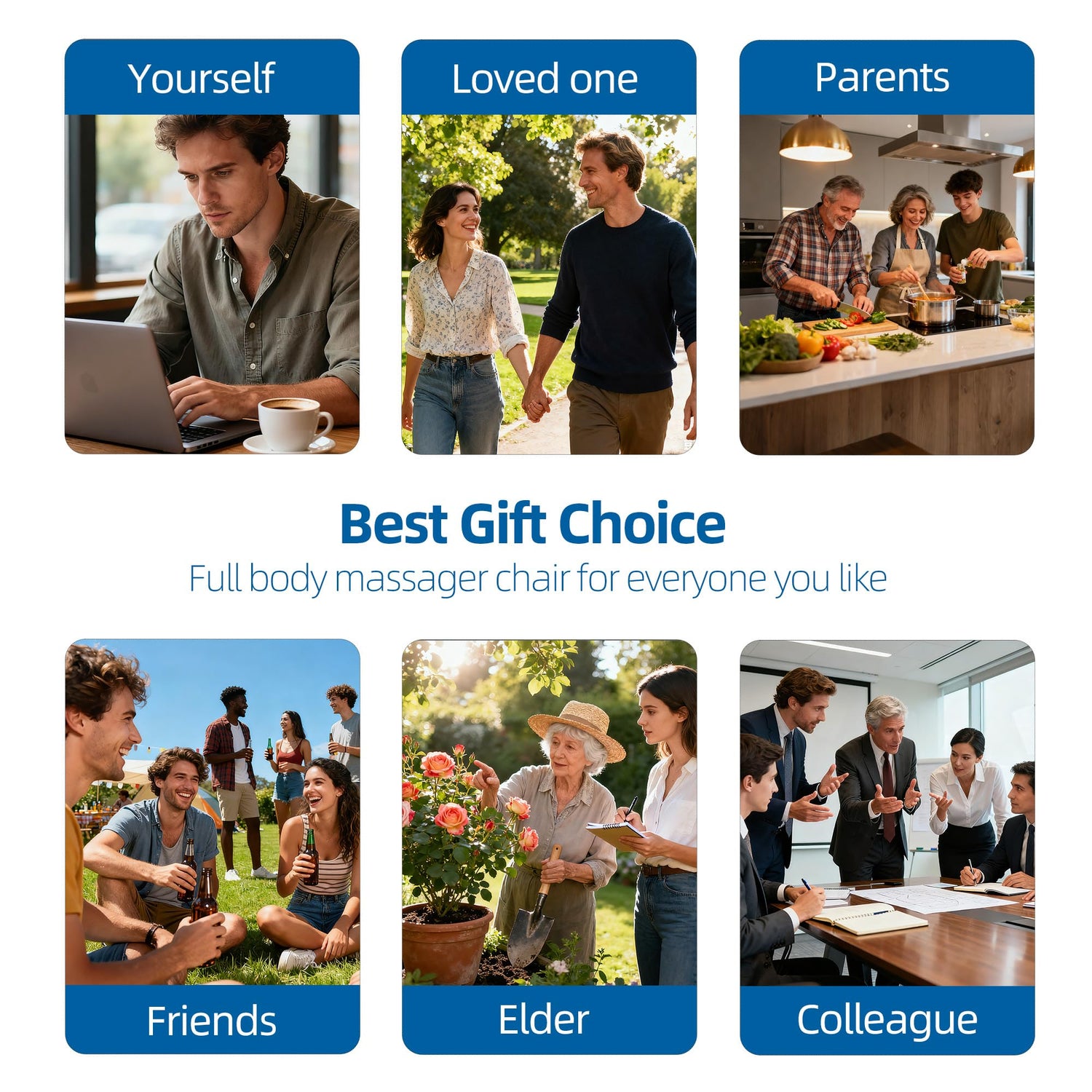 - Quiet Operation for Every Environment: Designed with low noise levels under 50 decibels, our full body massage chair ensures a peaceful atmosphere, whether you're using it in your home office, living room, or bedroom. This makes it an ideal retirement gift for parents or a treat for adults looking to unwind after a long day.