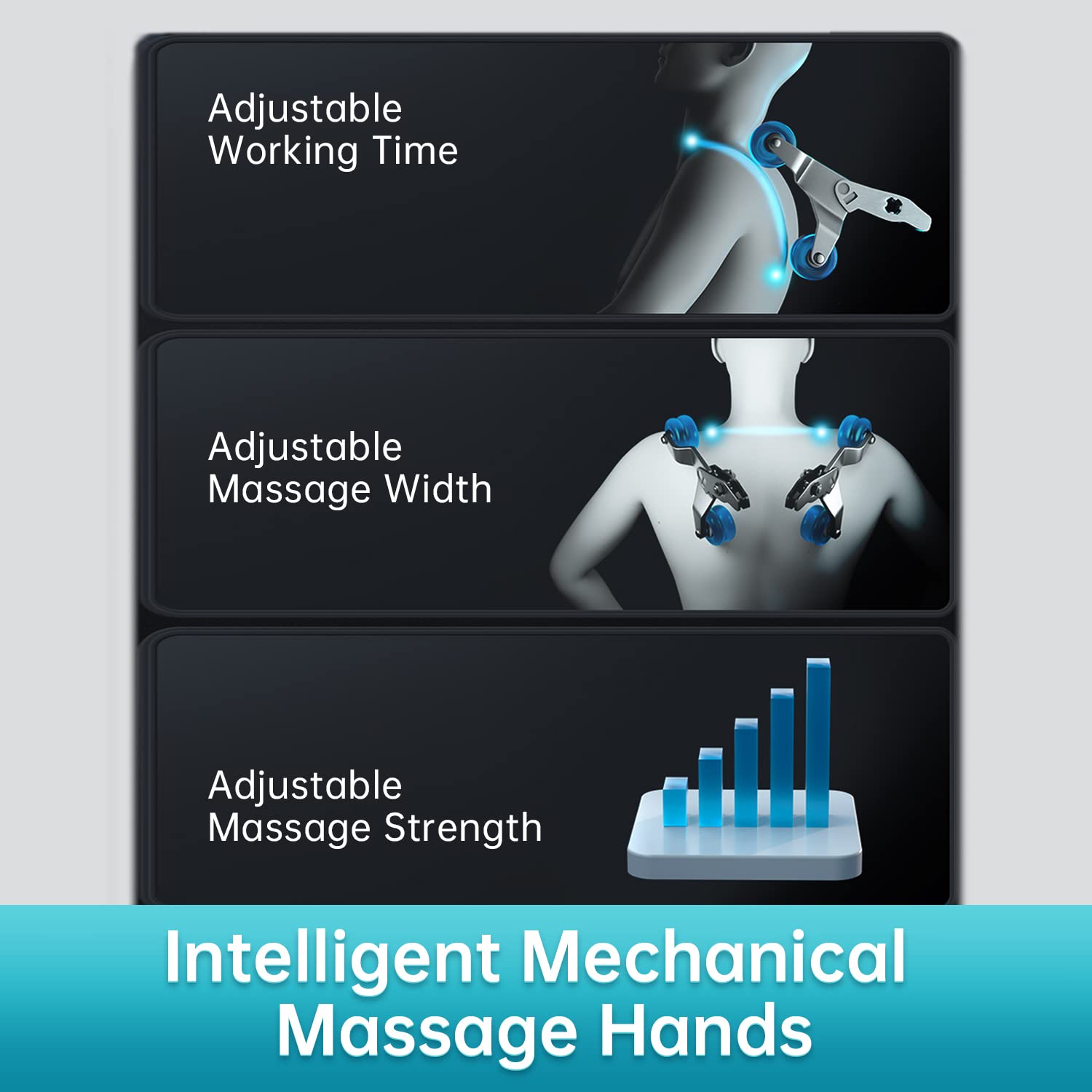 - đăBody shoulder detection and 6 automatic massage proceduresăAccording to your height, it will automatically adjusts the massage node on your shoulder, 6 automatic massage procedures give you the best massage experience.