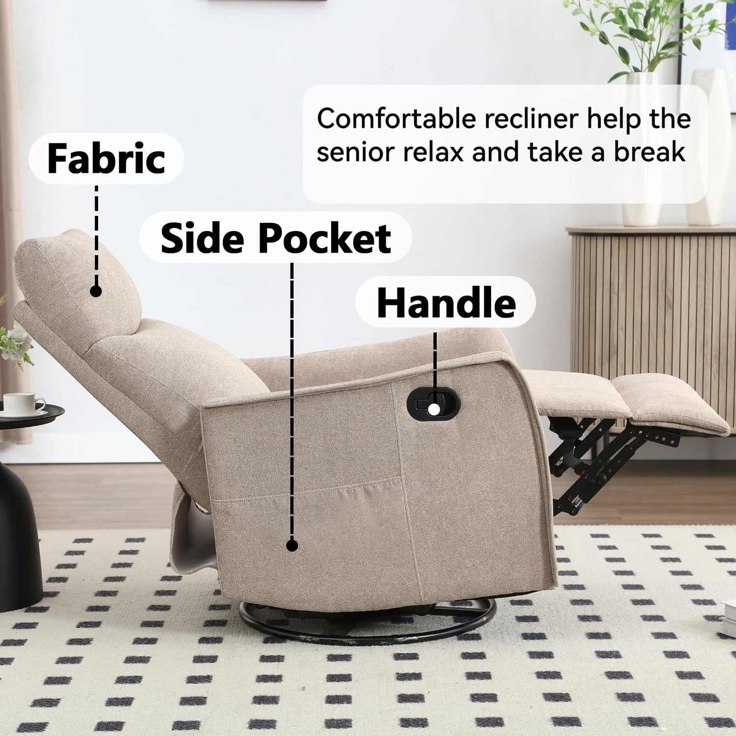 - Convenient Pockets for Easy Storage: Keep remotes, magazines, and other essentials within reach with the built-in side pockets of this swivel rocker chair; A clutter-free solution for your space