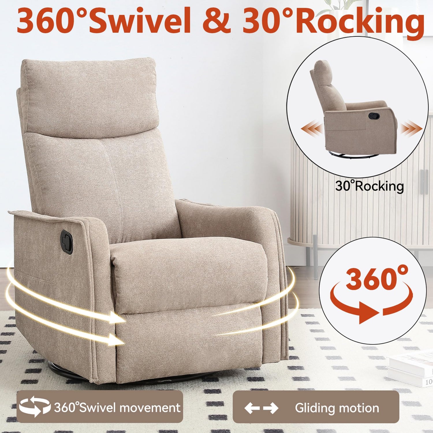 - Smooth Swivel and Gentle Rocking: This slim recliners for small spaces includes a 360° swivel base and gentle rocking functionality; Offering a soothing experience and seamless motion
