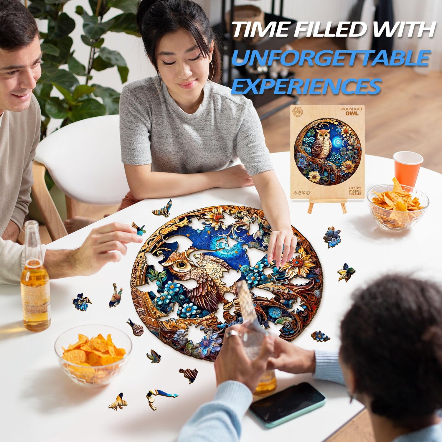 masseruon Wooden Puzzles for Adults-Moonlight Owl, Unique Shaped Jigsaw Puzzles for Adult(M, 190pieces, 11.4x11.4in), Beautiful Animal Shaped Wood Puzzles, Christmas Family Game Birthday Gift