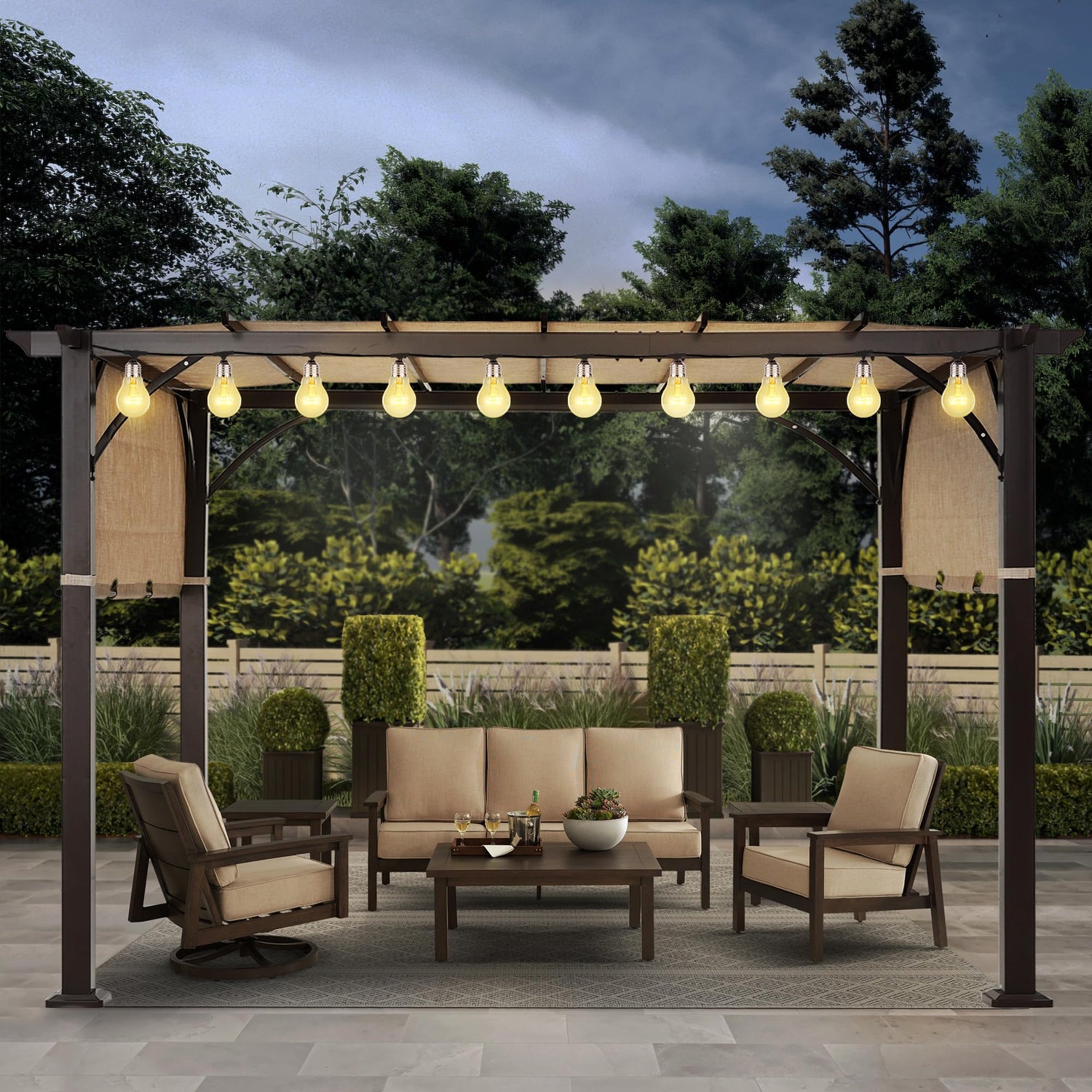 MASTERCANOPY 10' X 12' Outdoor Retractable Pergola with Adjustable Roof, Metal Patio Pergola for Backyard, Garden and Deck,Griege