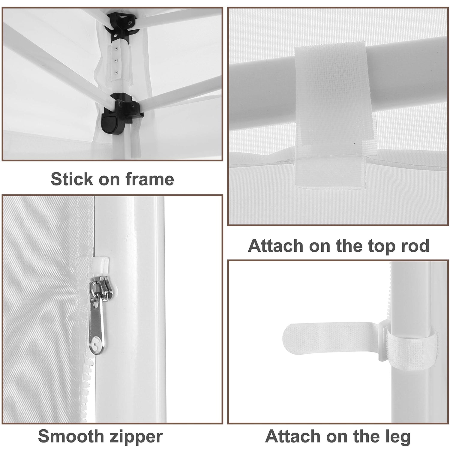 - Easy & Firm Installation: Fits for your canopy firmly with Velcro straps on top to attach to trusses of the canopy, 8 Velcro tabs to strap on frame legs for single use. With zip connectors to join side walls with each other when necessary.
