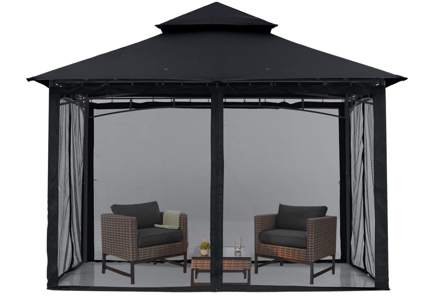 - 🔹4 Netting Walls: Features 4 Removable zippered screen nets. Protect you from the sun and rain as well as flying insects, while still having full airflow and visibility. Velcro straps allowing you to adjust the mosquito nets or corner curtains coverage to fit your needs, beautiful and practical, hope you enjoy the great outdoor time from your private gazebo.