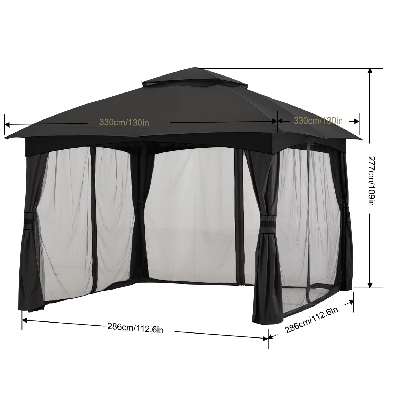 - 🔹Durable Materials: Rustproof powder-coated steel frame with Φ50mm (2") legs. The Strong Legs poles can keep the entire pavilion stable. And the entire gazebo frame is made of high-grade steel and coated with rust-proof layer, which can resist chipping, peeling, rust and corrosion, prolong the gazebo’s service life.