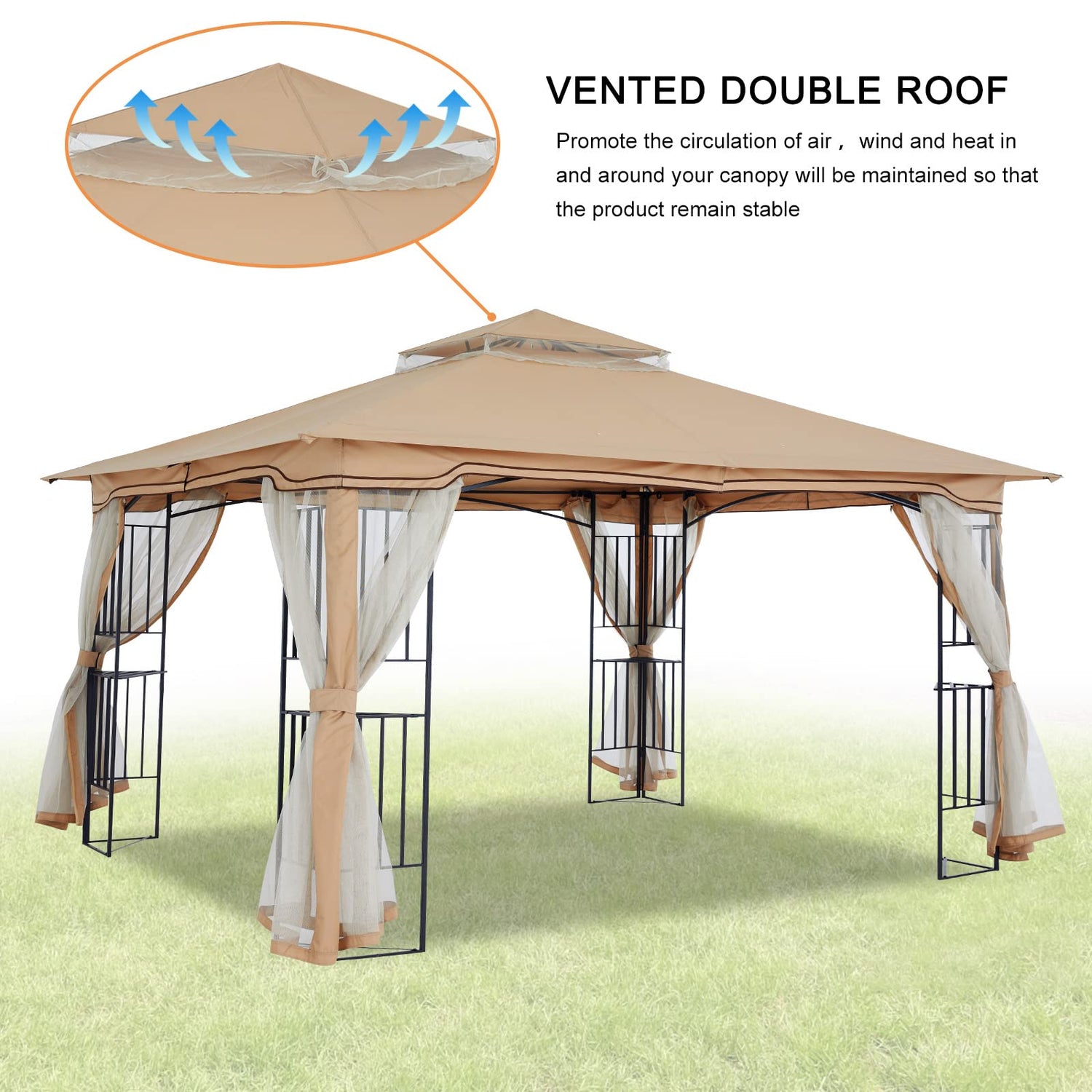MASTERCANOPY Patio Outdoor Gazebo with Netting Screen Walls and Corner Shelf Design (11x11,Beige)