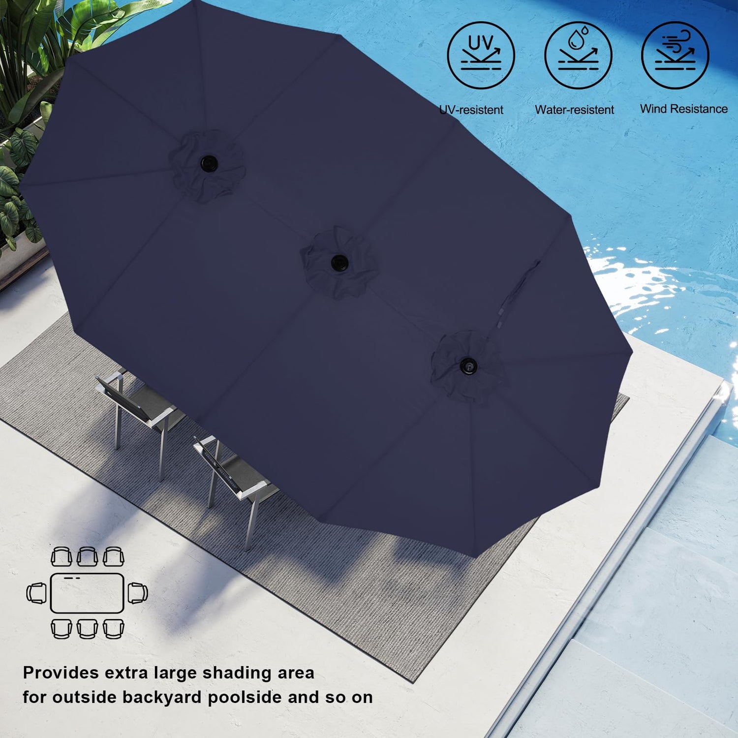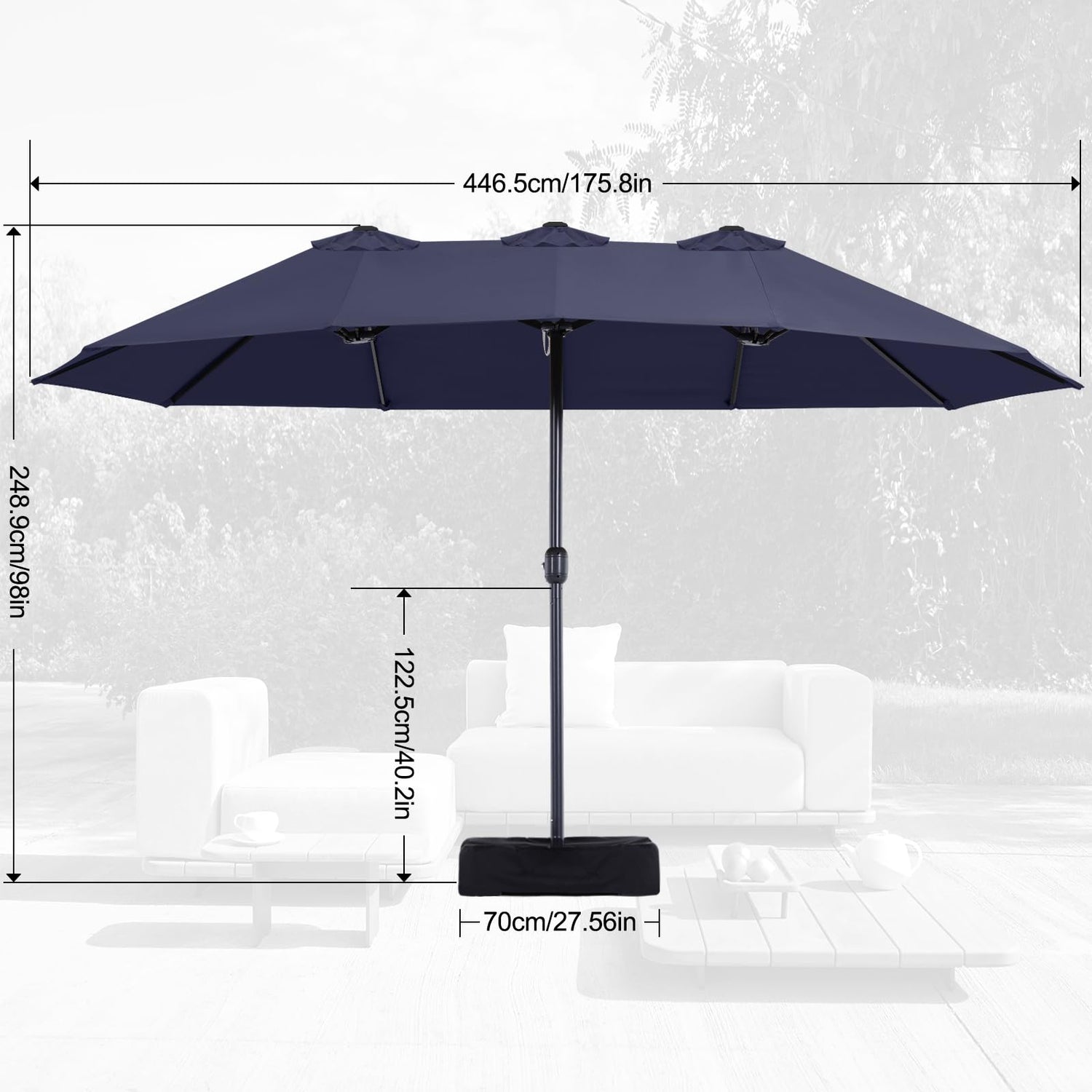 MASTERCANOPY Patio Outdoor Umbrella,15FT Double Sided Large Umbrella,Including Umbrella Base,Suitable For Garden,Pool Side,Deck,Navy Blue