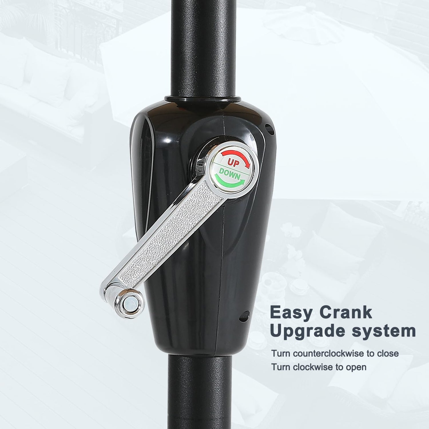 - Reasonable Design: Strong pole to match your patio table. Convenient with crank to open or close. Handy push button to tilt according to the angle of sunray to produce a large range of shade.