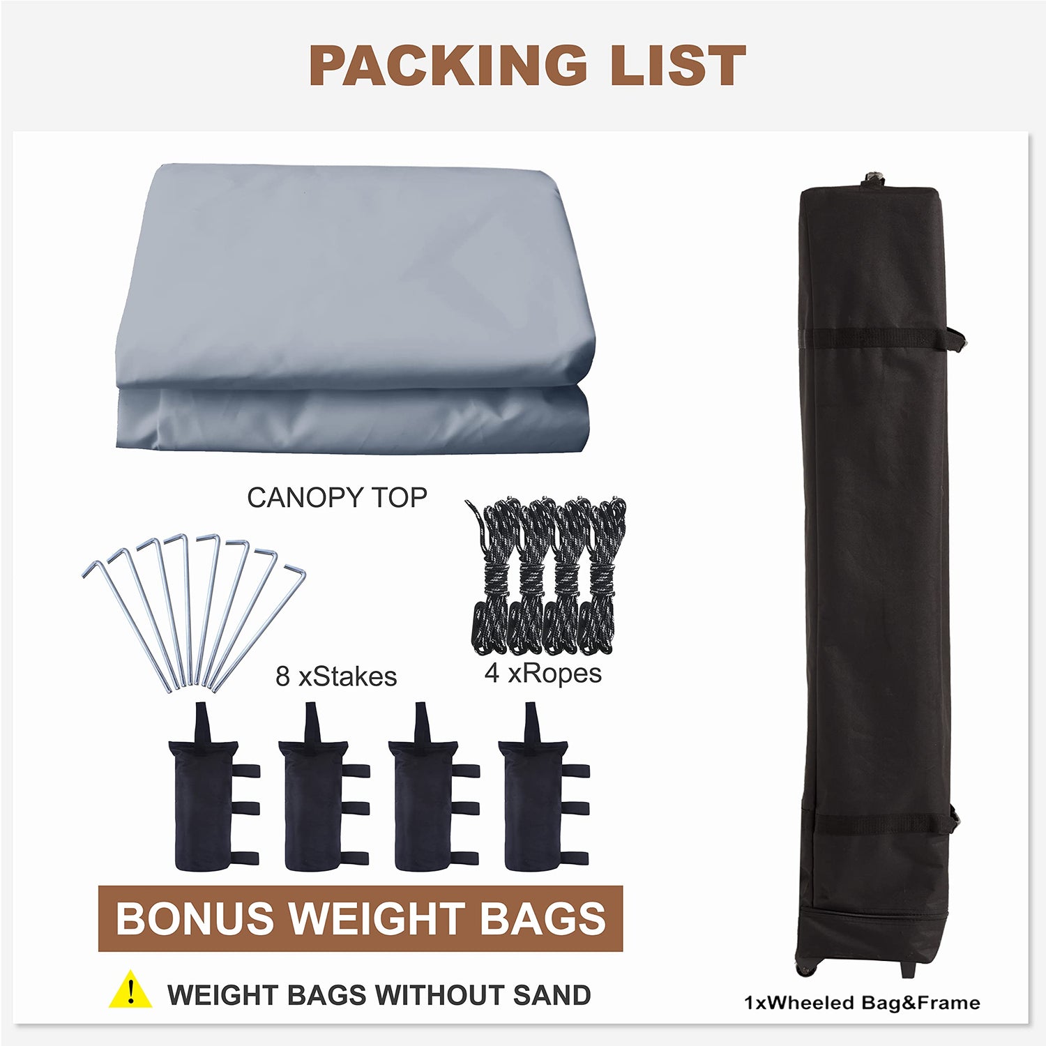 - ✅Package Includes: 1 Canopy Frame, 1 Canopy Top, Mosquito Netting, 4 Sand Bags, 4 Ropes, 8 Stakes and 1 Wheeled Bag, which is crafted of 600D PVC coated fabric with reinforced handles