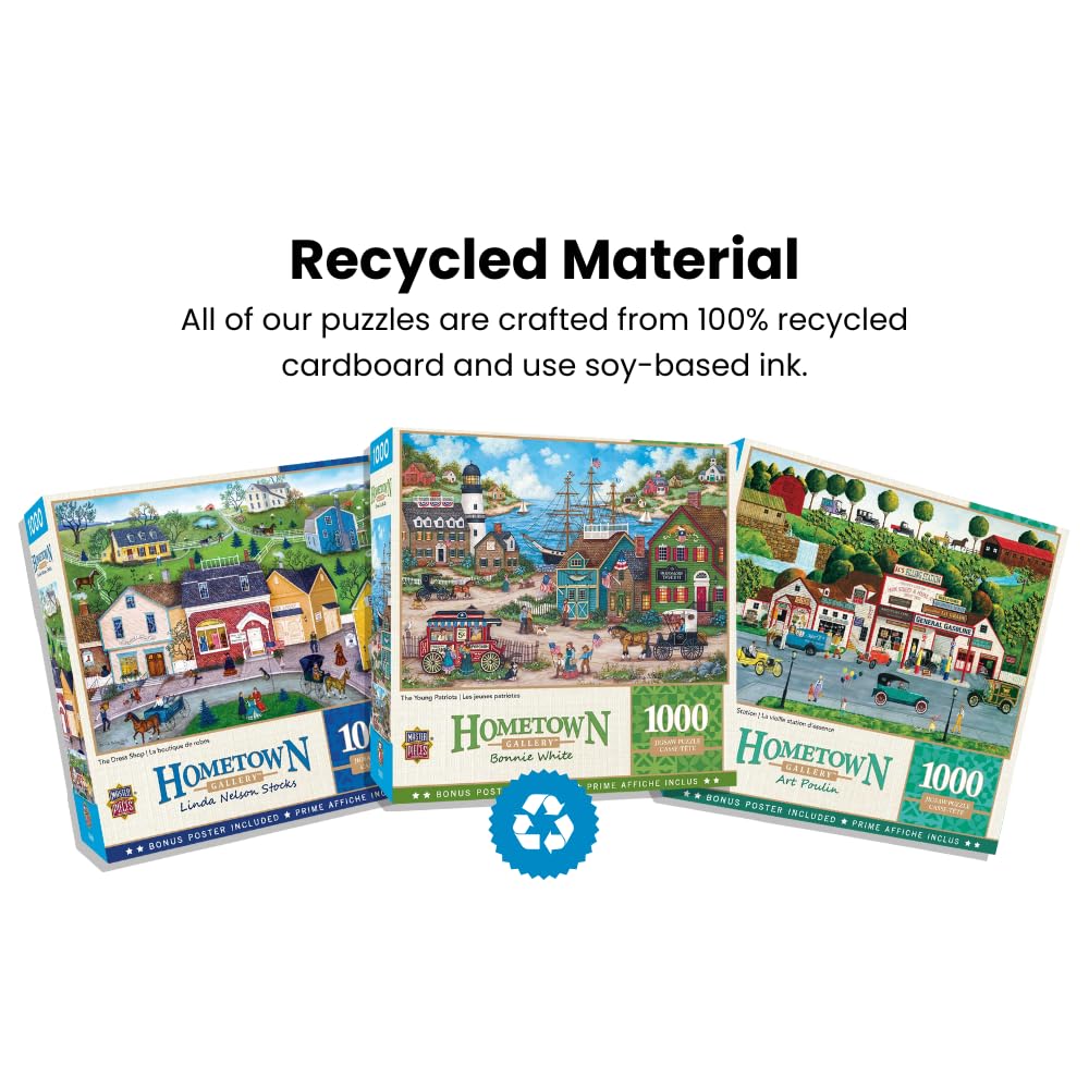 - ENVIRONMENTALLY RESPONSIBLE: MasterPieces is an American Puzzle & Game Company; our puzzles are made from 100% recycled material and non-toxic soy-based inks
