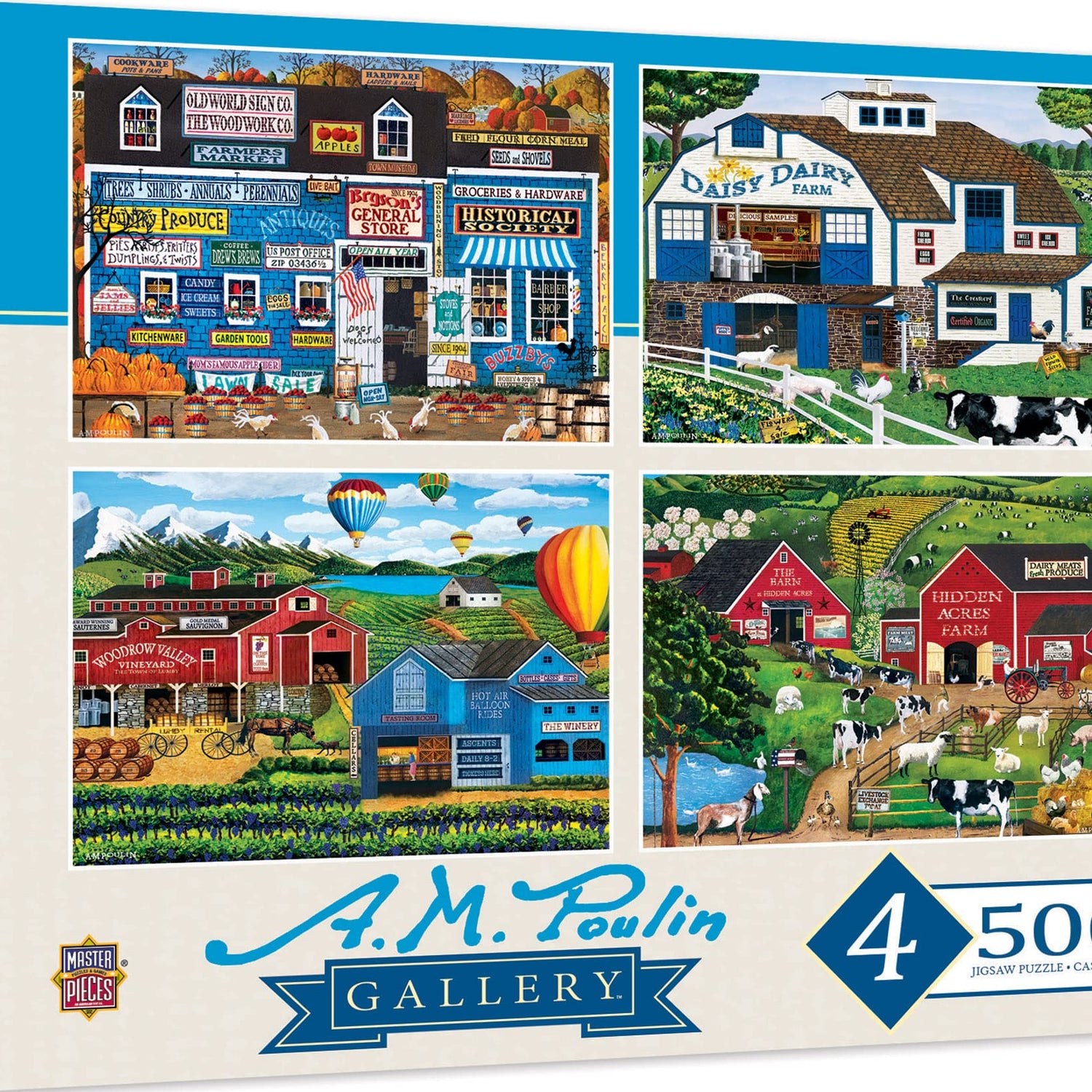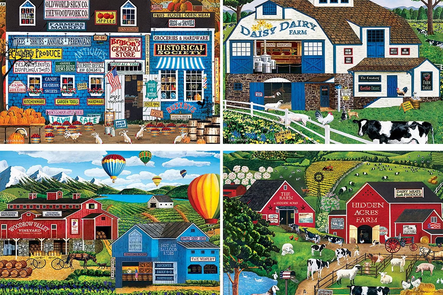 MasterPieces 2000 Piece Jigsaw Puzzle for Adults, Family, Or Youth - Fun Folk Art Am Poulin 4-Pack - 14"x19"