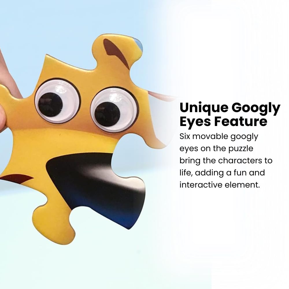 - GOOGLY EYES: 6 pre-mounted, factory-secured wiggly, movable eyes are embedded into the puzzle itself plus decorate the colorful box; great surprise for young puzzle lovers and playtime; MasterPieces is an American Puzzle & Game Company