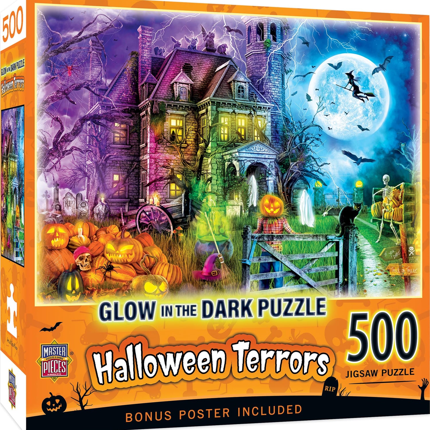 MasterPieces 500 Piece Glow in The Dark Halloween Jigsaw Puzzle - Halloween Terrors - 15"x21"