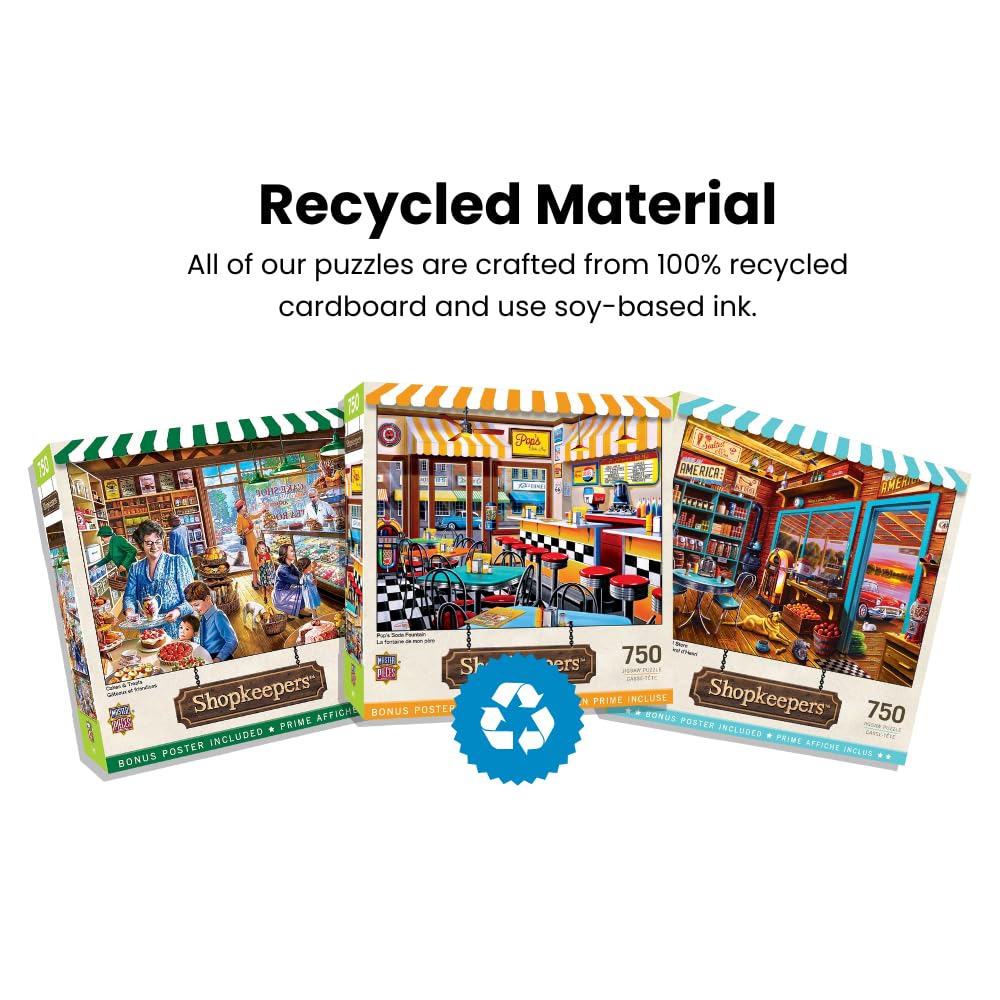 - Environmentally Friendly - Our puzzles are made from 100% recycled material and non-toxic, soy-based inks for eco-friendly fun!