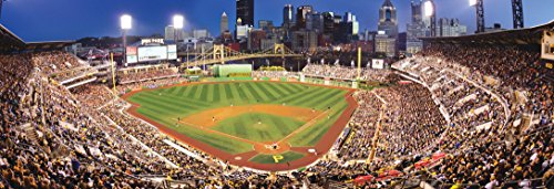 Details: Pittsburgh Pirates, PNC Park- MLB Panoramic Stadiums 13" x 39" (3ft.) Wide Panoramic Puzzle. Features the view from behind home plate of the Pittsburgh Pirates' PNC Park with such incredible detail that it's common for you to find yourself as part of the photograph. Support your team or just show off your team spirit with this 1000 piece panoramic jigsaw puzzle from MasterPieces Puzzle Company. Puzzle measures 13 inches by 39 inches. Made in the USA. Suitable for ages 13 and up. MasterPieces have been around for over 15 years with a variety of puzzle titles ranging in difficulty and themes to accommodate puzzle lovers the world over. All puzzles are also environmentally friendly, using recycled materials in production and packaging as well as biodegradable storage bags and soy-based inks.