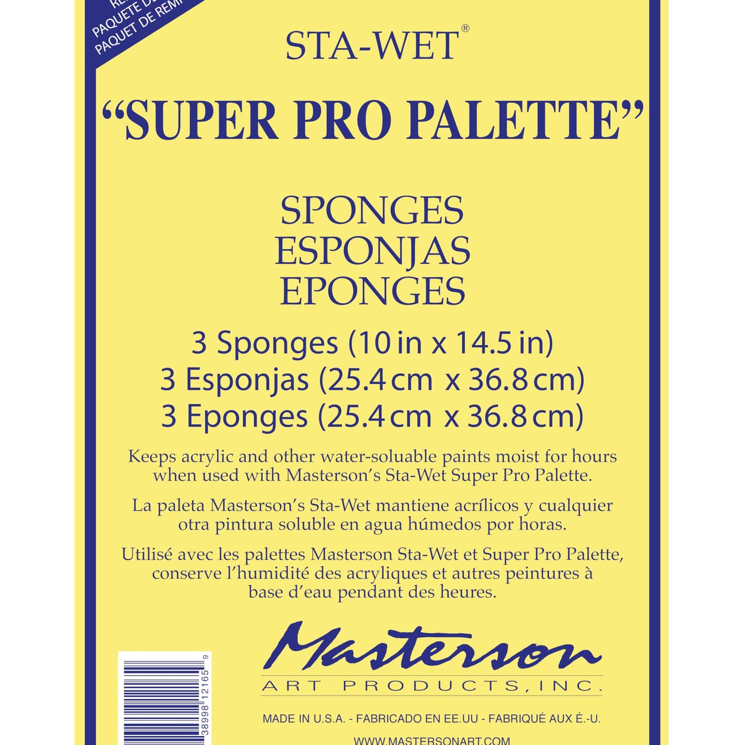 - Masterson Sta-Wet Sponge Refill Pack – 3 Sta-Wet Sponges. The cellulose sponge evenly and effectively transfers moisture to the Sta-Wet Acrylic Paper, extending the life of your paints. The cellulose sponge material provides the absorption level required for the Masterson Sta-Wet Palette System and is environmentally friendly.