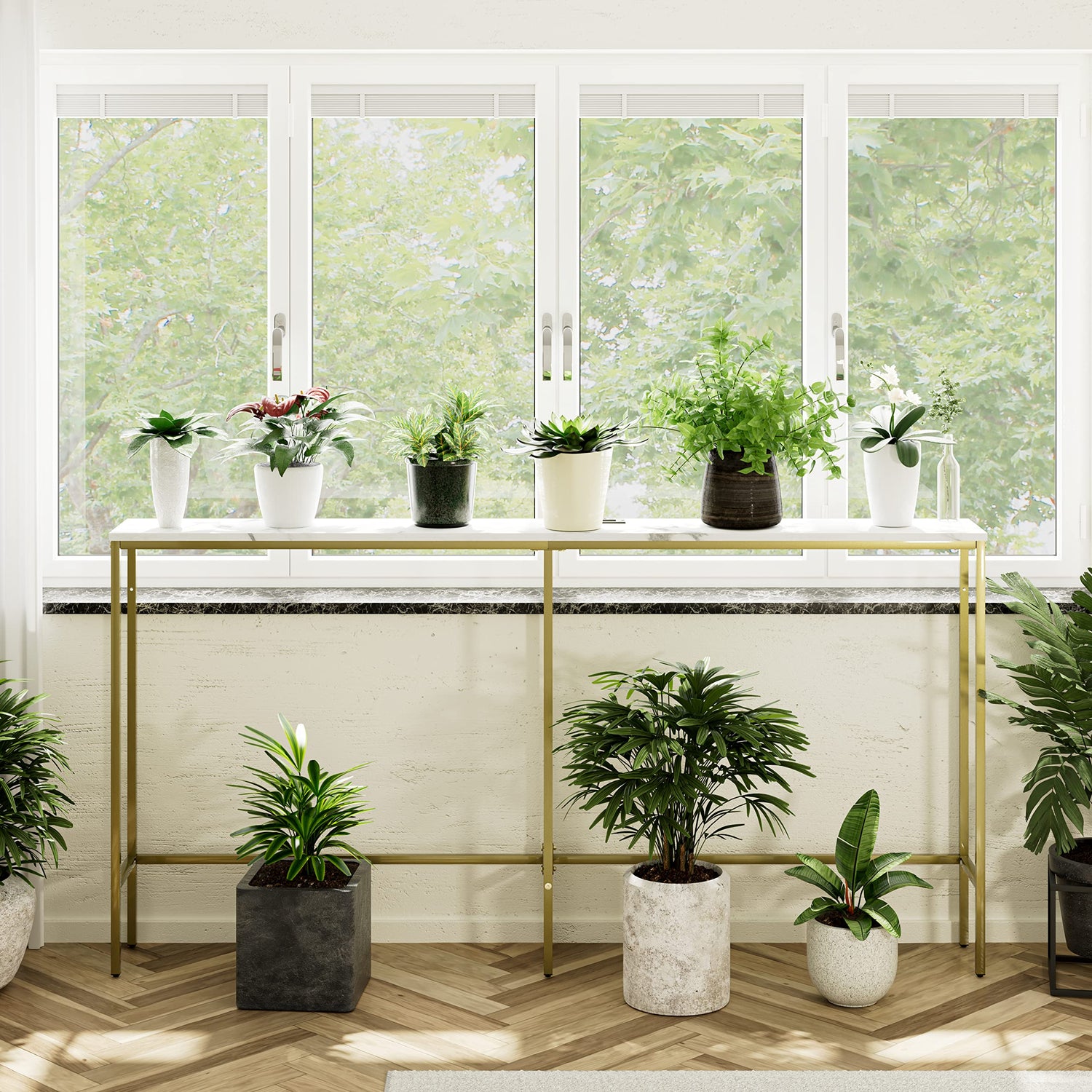 - Sturdy & Stable: The entry table is made of premium quality engineered wood,the sturdy gold metal frame is durable, and the console top can carry up to 44 lbs. And comes with 6 adjustable feet to make the sofa table stable.