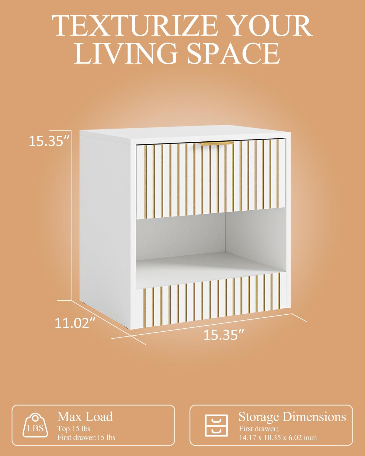 - Unique and Modern Design: Dimensions: 15.35" L x 11.02" W x 15.35" H. This night stand features a sleek vertical striped design that combines modern style with practicality. Its legless rectangular shape makes it a unique addition to any bedroom, living room, or office.