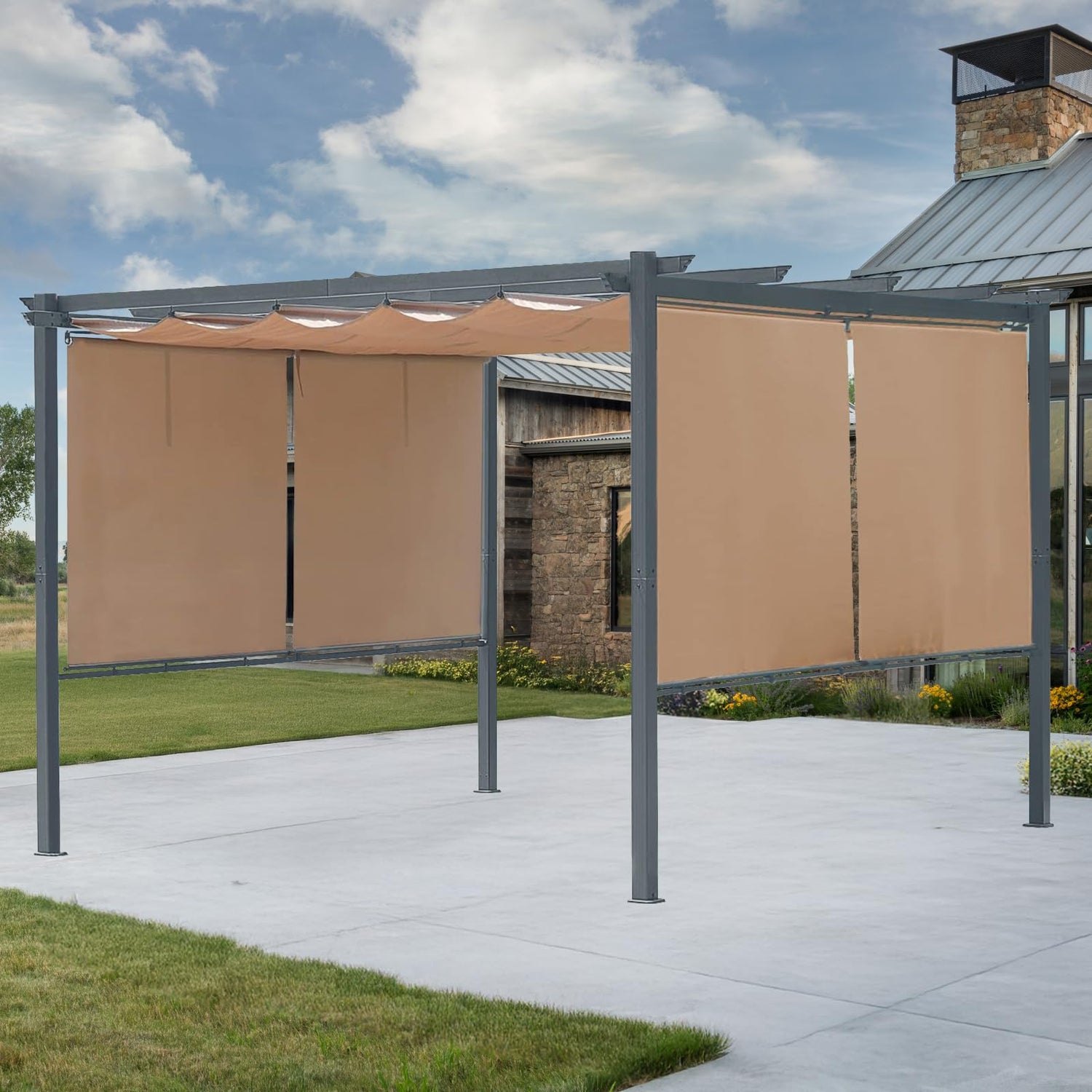Masyardi 12 x 12 Ft Outdoor Aluminum Pergola, Retractable Canopy & 2 Sides Shades for Patio Backyard Garden Deck