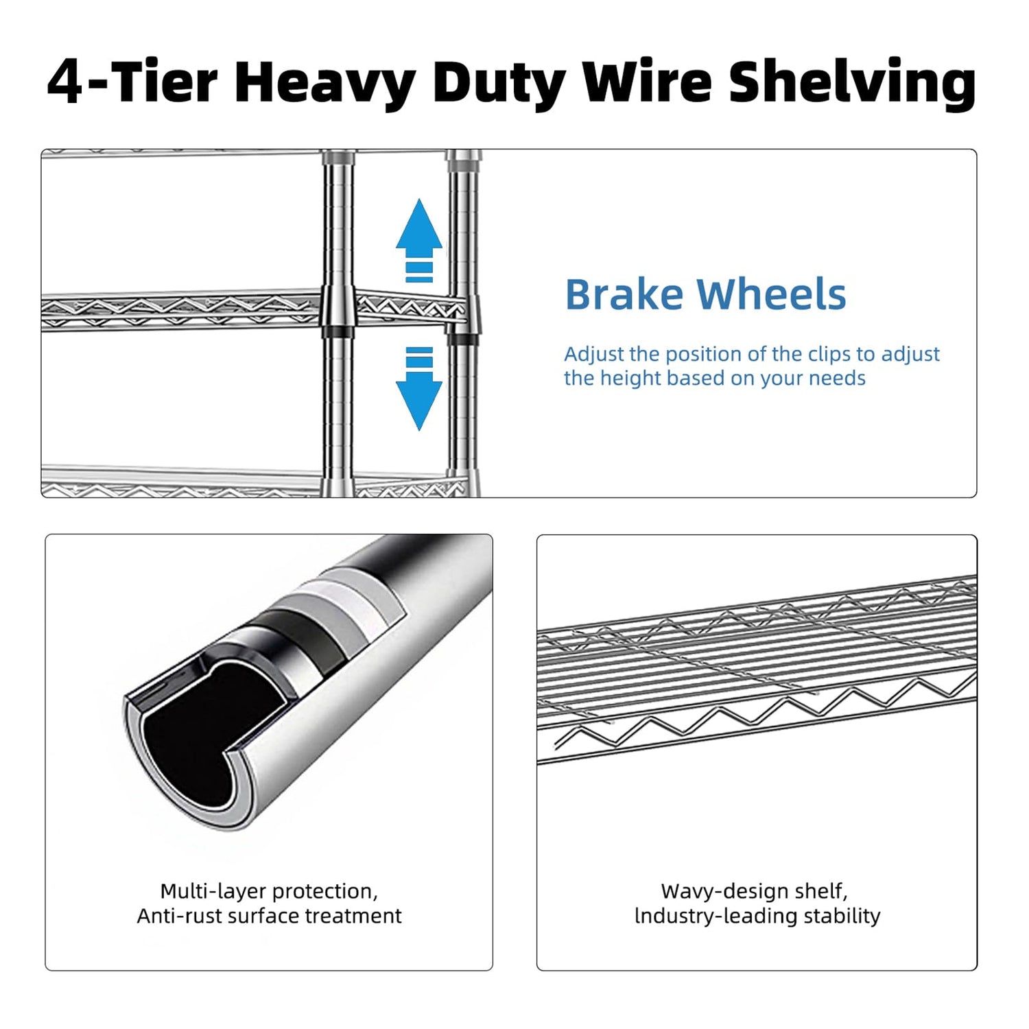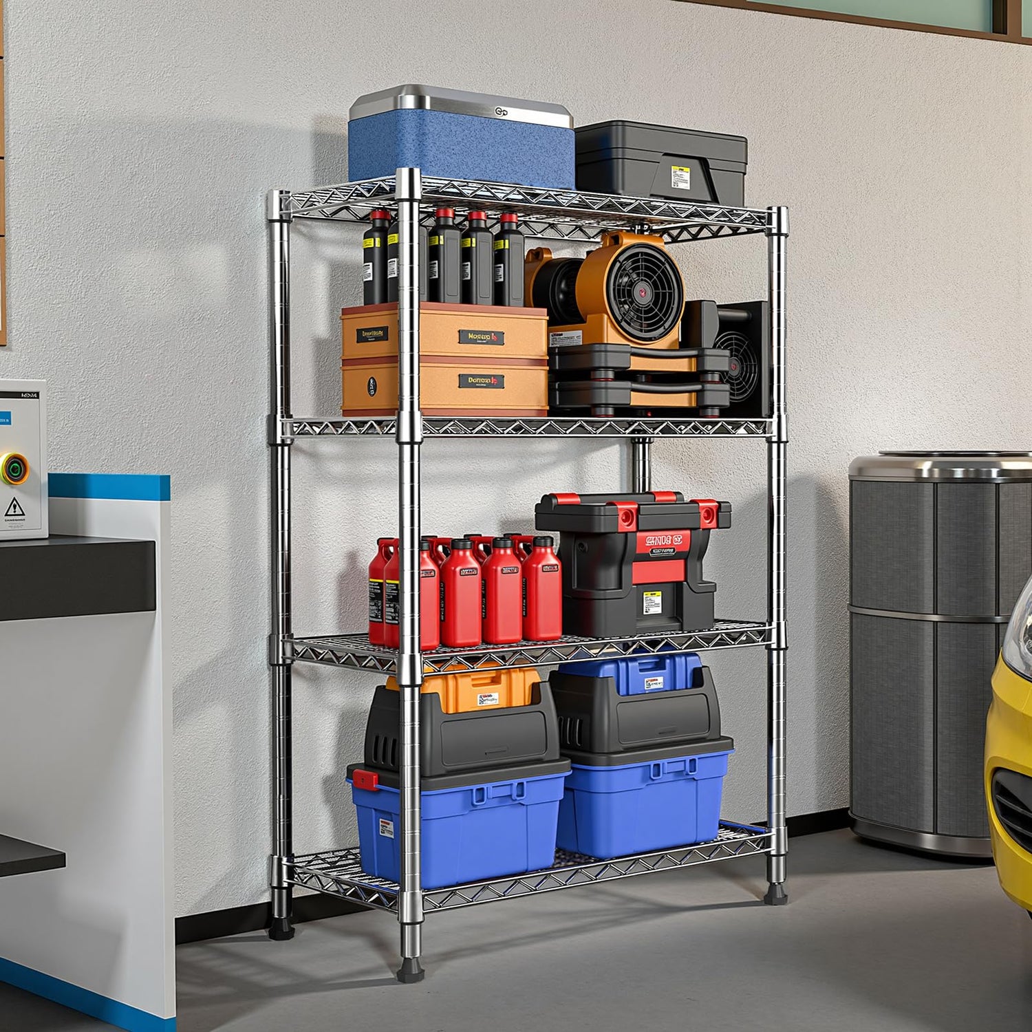 MATONELL 1000 lbs Capacity Heavy Duty 4-Tier Steel Shelving Unit - Adjustable Chrome Wire Rack Storage Shelf for Home Kitchen Office Garage Gym 13.7" D x 29.5" W x 47.2" H (Chrome)