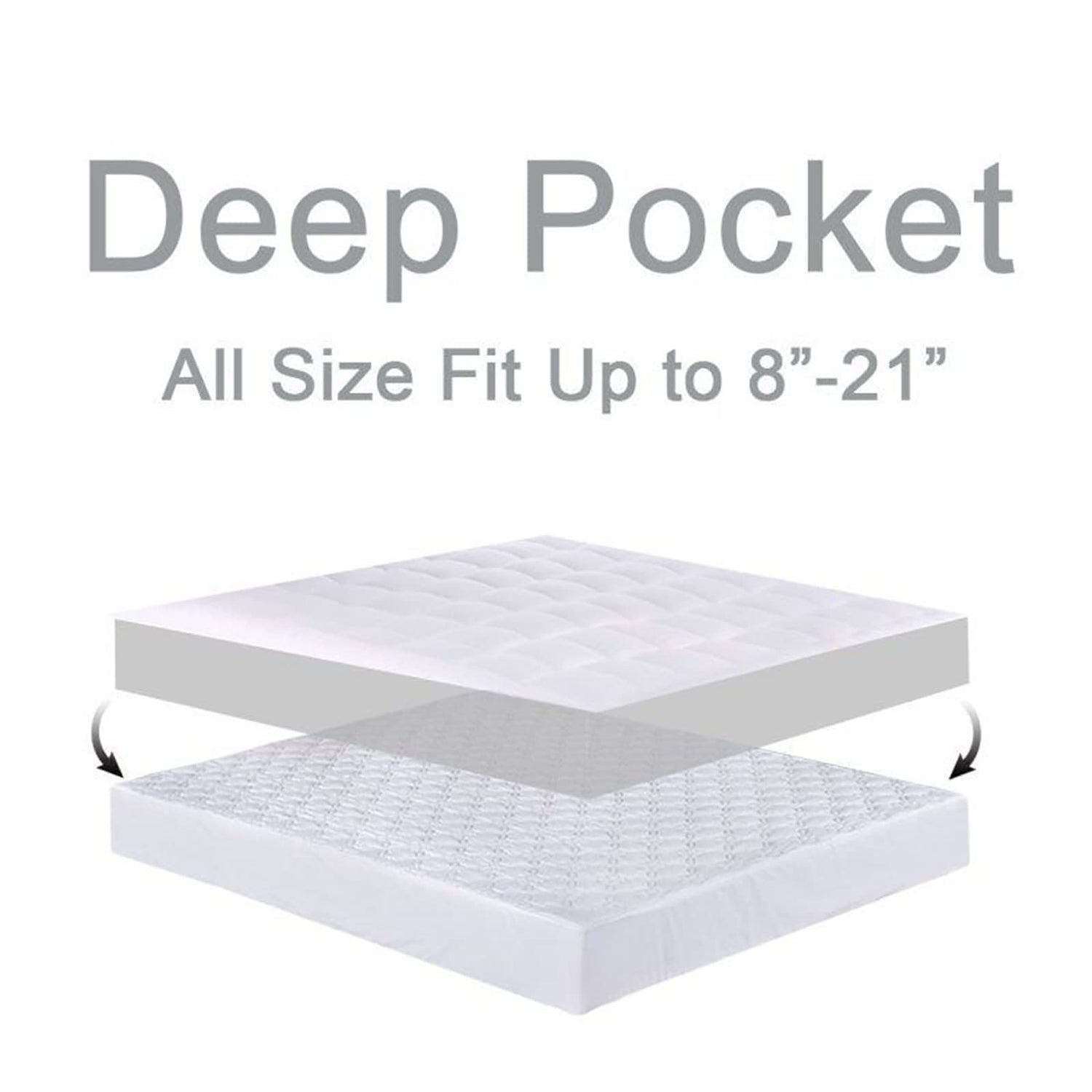 - 1.Extra Thick and Double Border Technology: Innovative"Double Border Pillow Top Construction" technology not only prevents filling from moving or leak out, also enables this mattress topper overstuffed with 60% more filling, which is far beyond than average on the market. Ultra Soft and comfy, reviving your too firm mattress and enjoying the luxurious comfort at home.